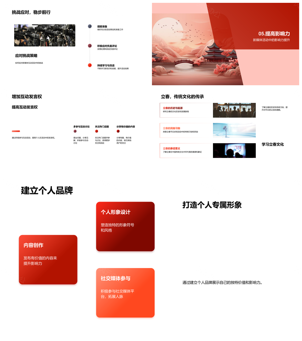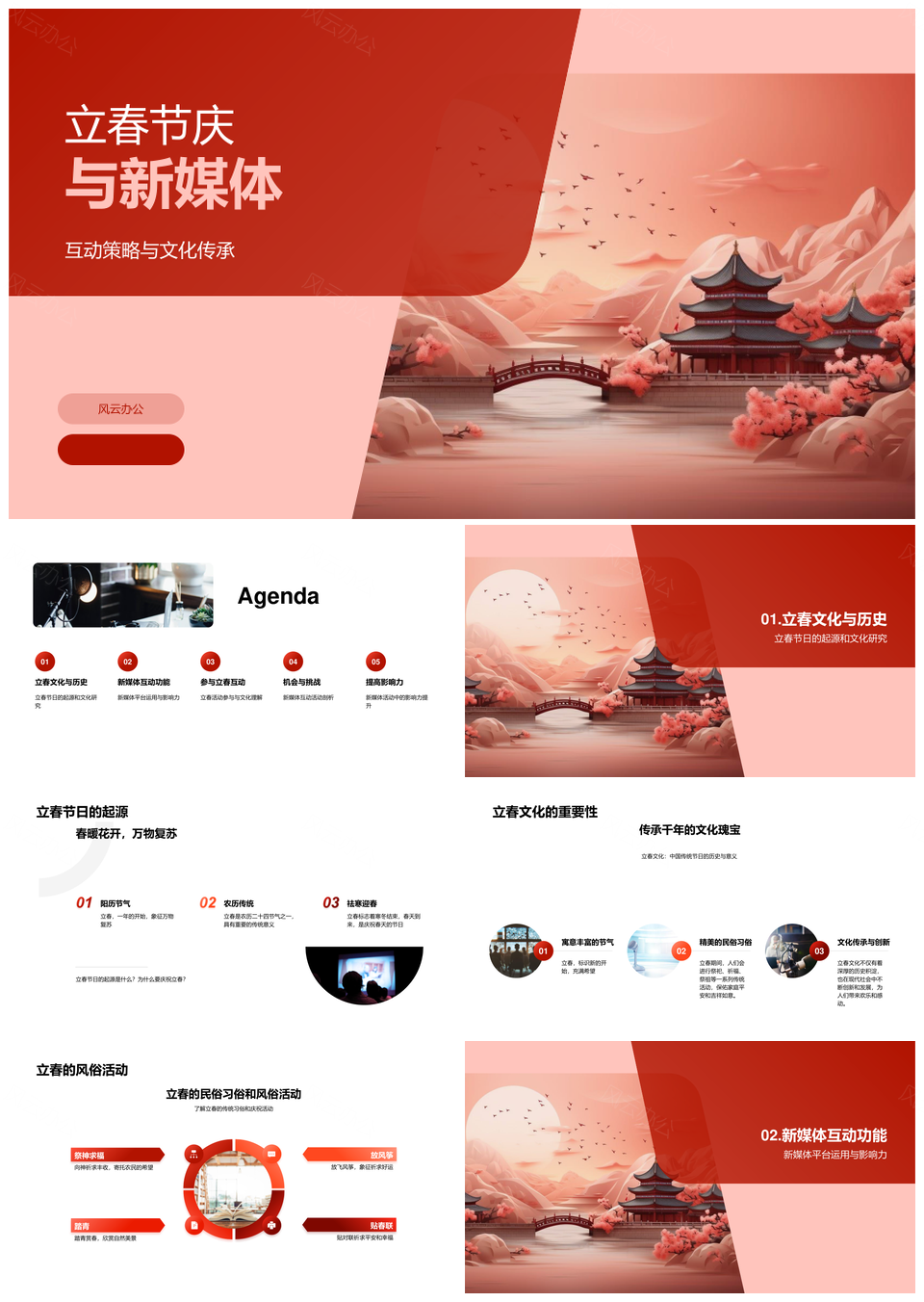 风云办公提供的立春文化新媒体互动传承策略PPT模板,下载格式为pptx,一共23页,作品中文字及图均可以修改和编辑,图片更改请在作品中右键图片并更换,文字修改请直接点击文字进行修改。