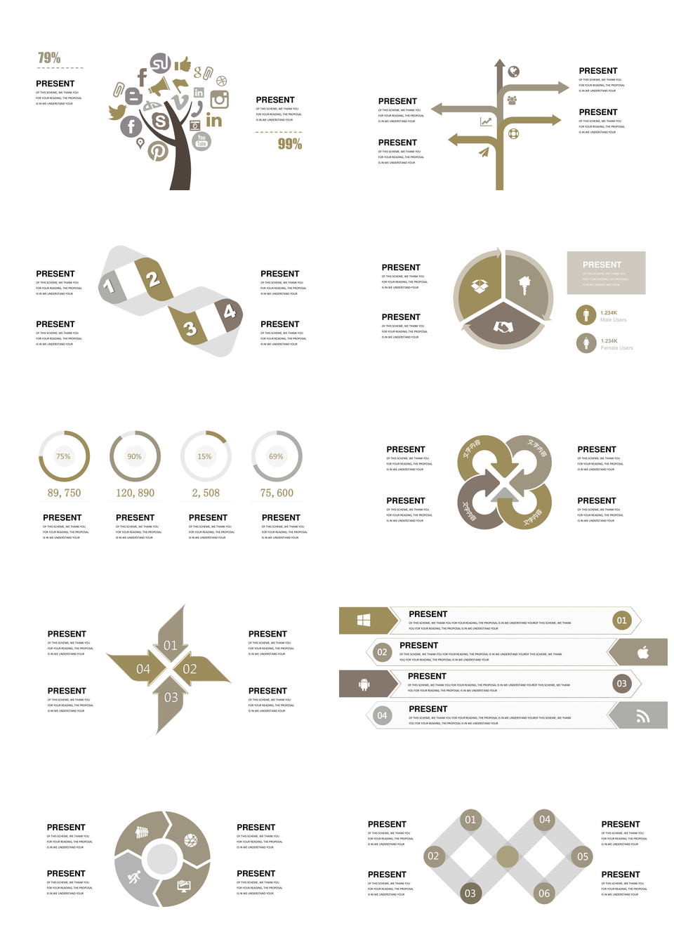 这是一张卡其色系商务并列关系总分关系PPT图表合集,包含卡其色系、商务、并列关系、总分关系、图表合集等主题内容,也可用作卡其色系、商务、并列关系、总分关系、PPT、图表、合集