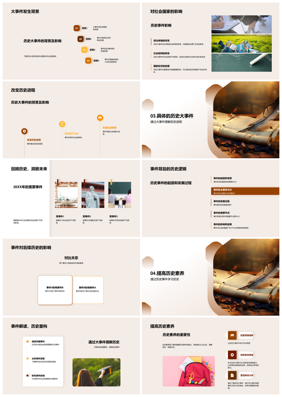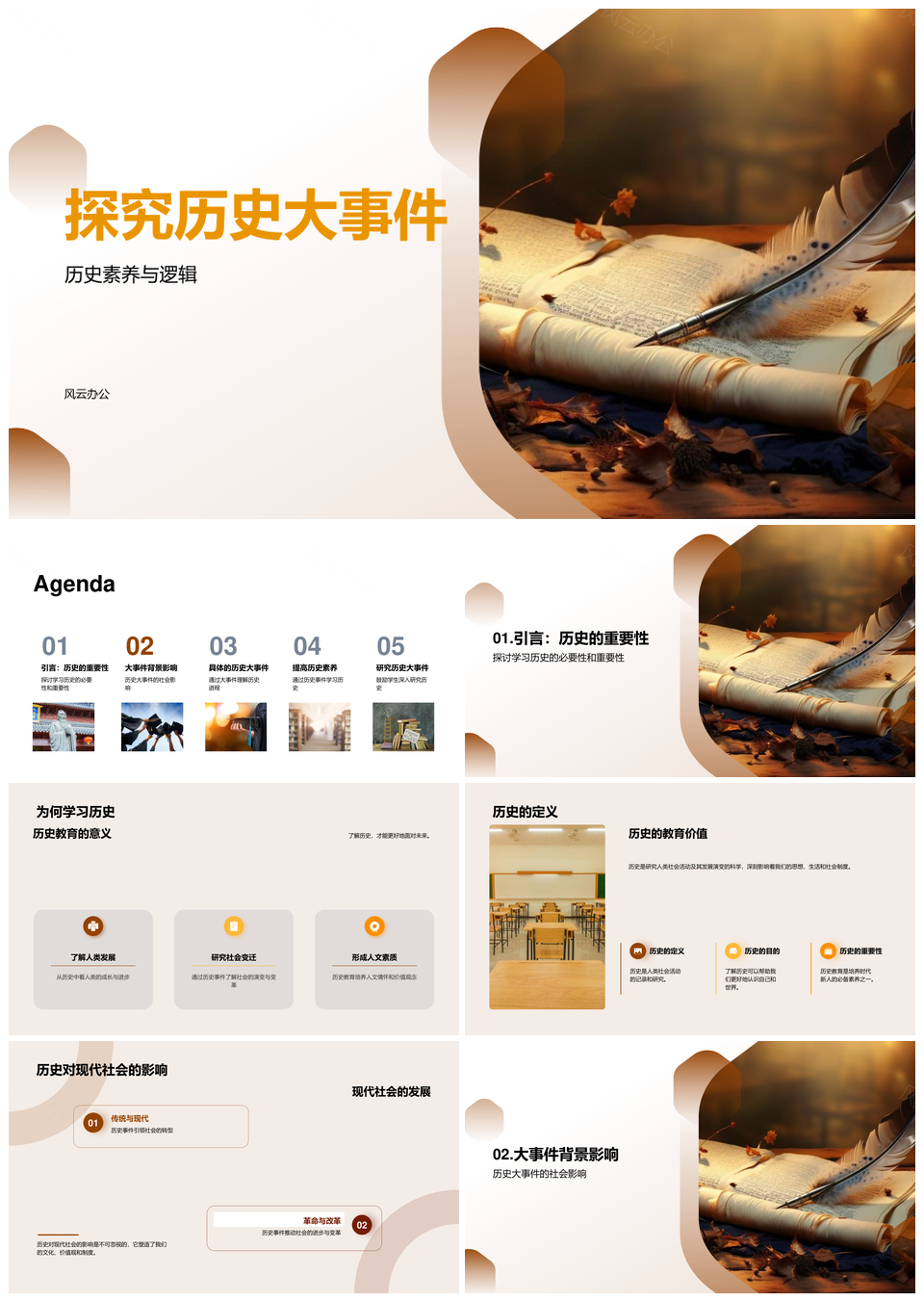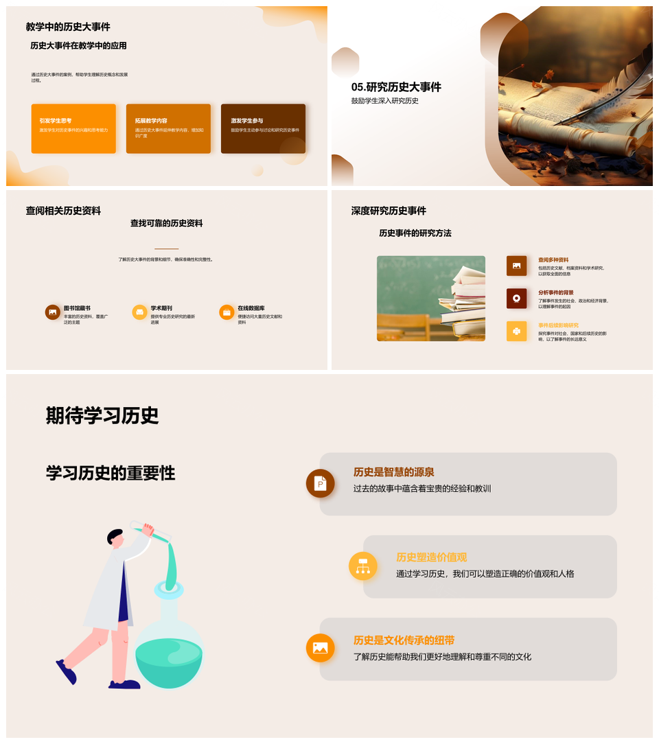 探究历史大事件定义古老卷轴与素养逻辑PPT模板推荐