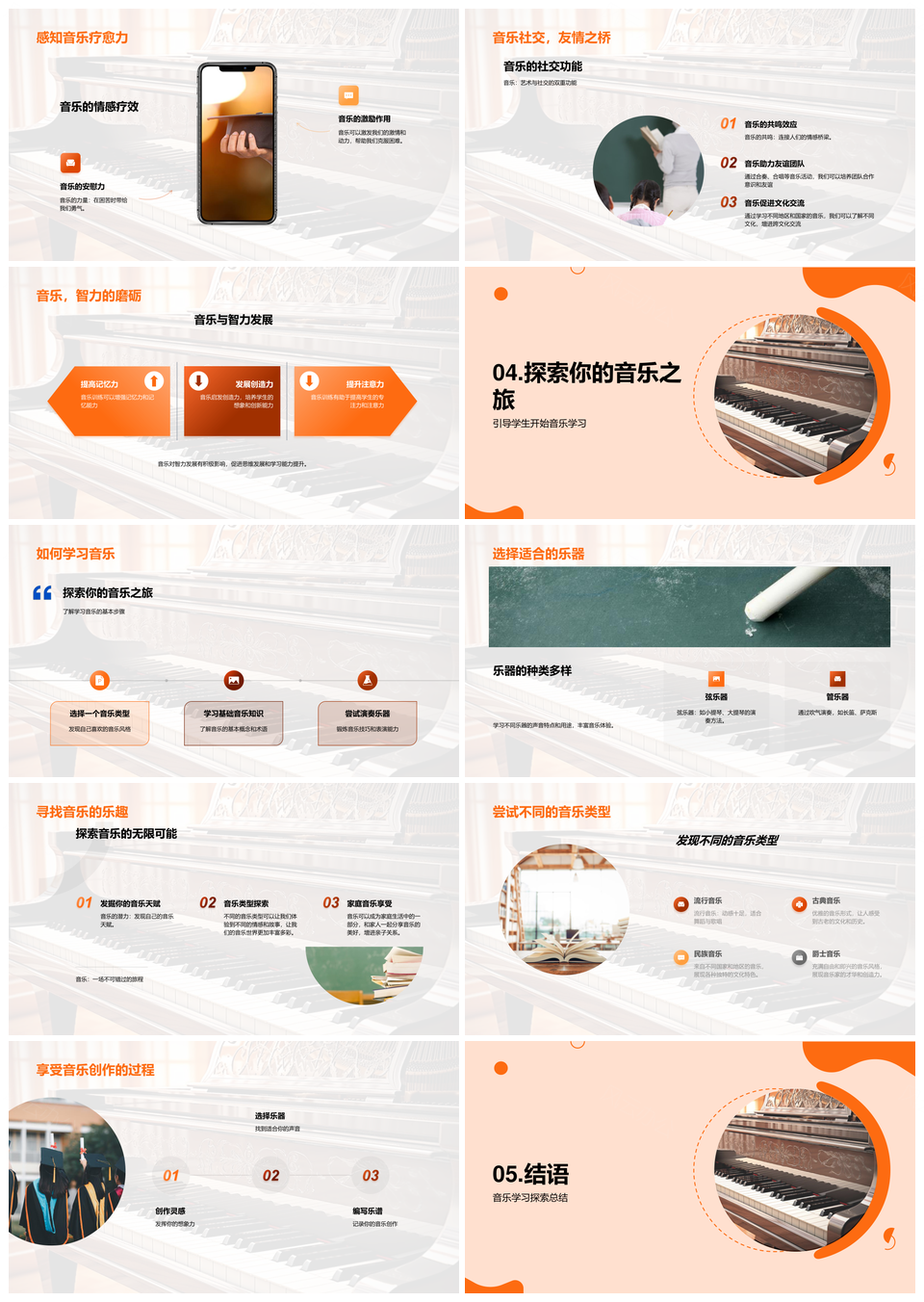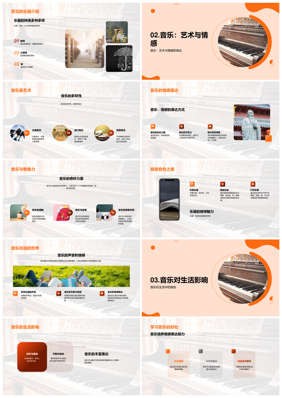 风云办公提供的音乐艺术情感启蒙启程乐器教育想象力PPT模板,下载格式为pptx,一共32页,作品中文字及图均可以修改和编辑,图片更改请在作品中右键图片并更换,文字修改请直接点击文字进行修改。