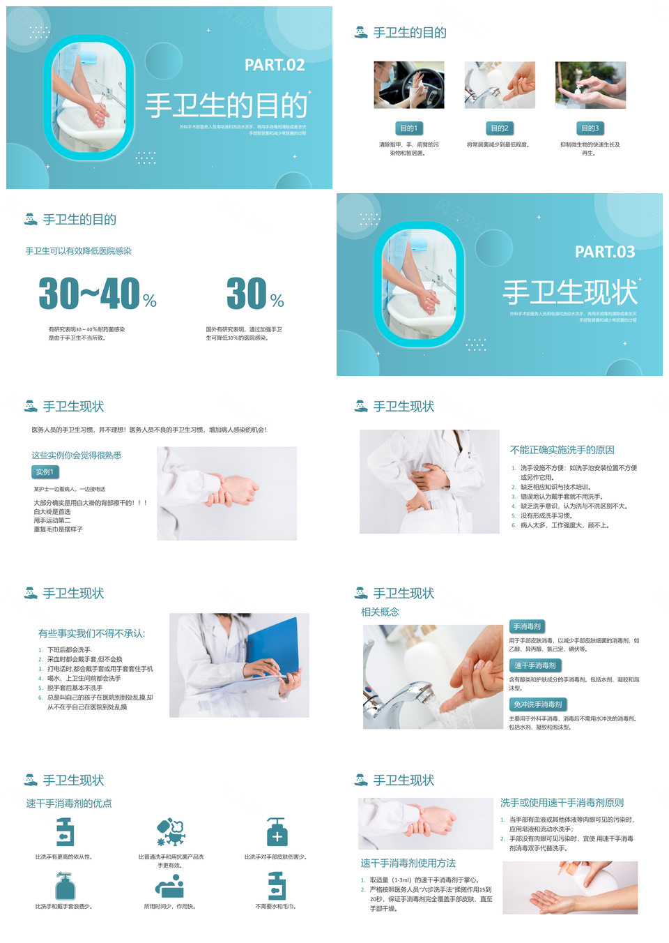 2025蓝色绿色简约商务实拍院感手卫生知识培训课件推荐