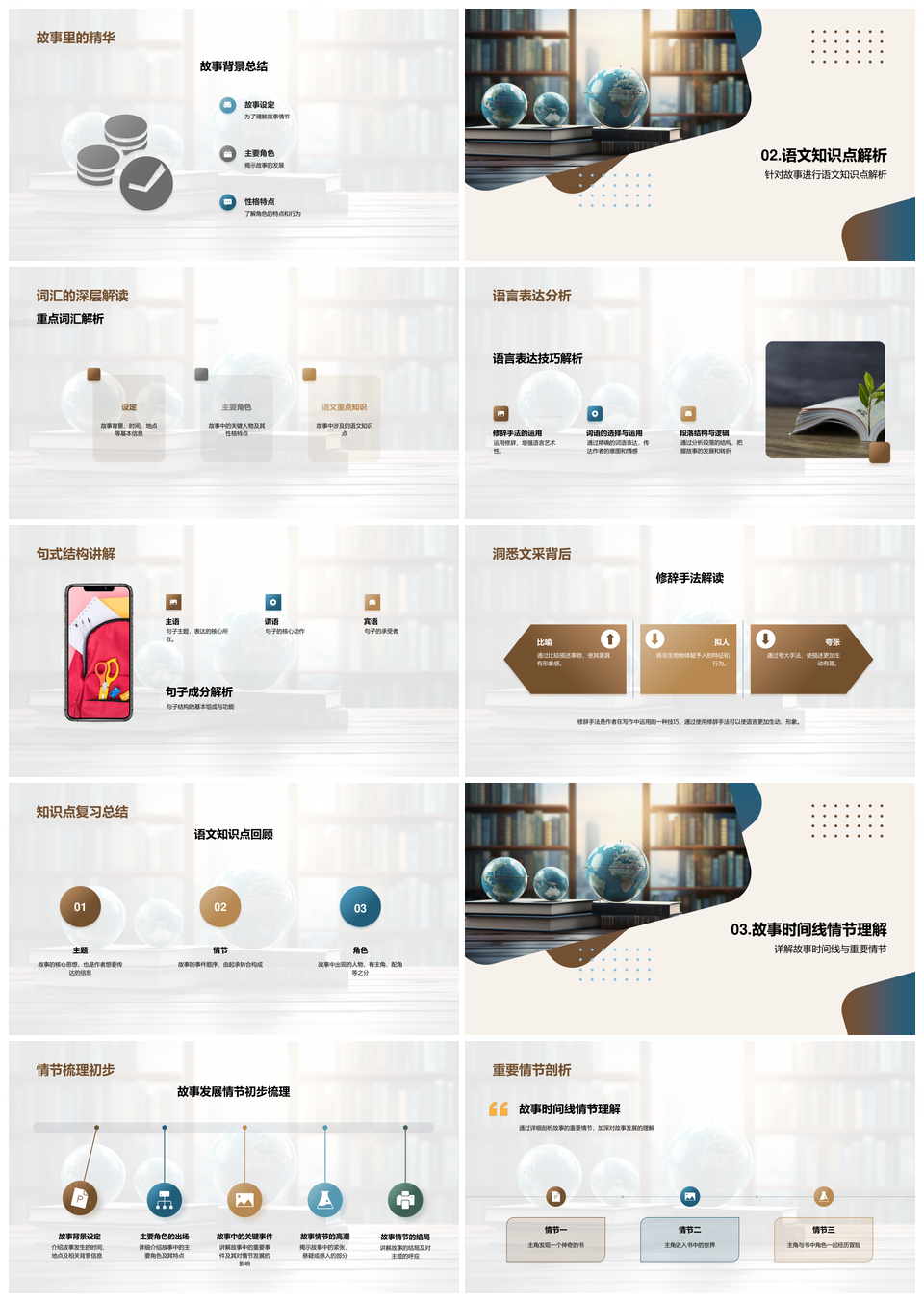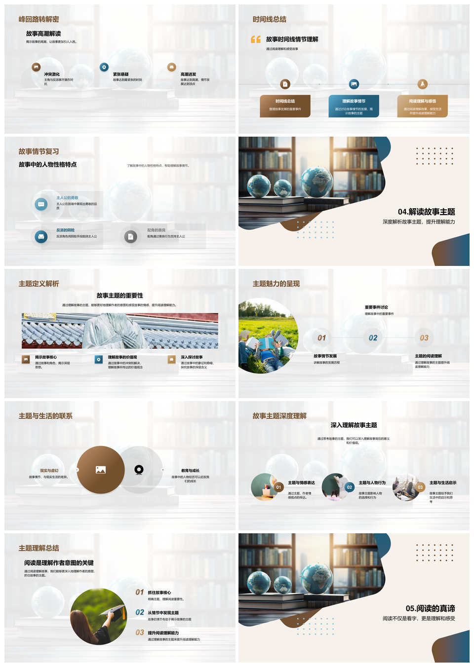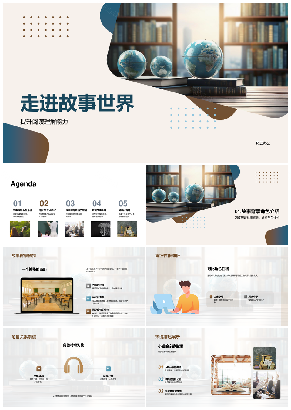 这是一张走进故事世界探秘角色解析语文领悟阅读真谛PPT模板,包含走进、故事世界、探秘、角色解析、语文、领悟、阅读真谛等主题内容,也可用作走进故事世界探秘、故事世界探秘角色、走进故事探秘解析、探秘角色解析阅读、角色解析语文领悟、语文领悟阅读真谛、走进故事世界、故事世界探秘、探秘角色解析、解析语文领悟、语文领悟阅读、领悟阅读真谛、故事世界、探秘角色、解析语文等PPT场景使用。 风云办公提供的走进故事世界探秘角色解析语文领悟阅读真谛PPT模板,下载格式为pptx,一共33页,作品中文字及图均可以修改和编辑,图片更改请在作品中右键图片并更换,文字修改请直接点击文字进行修改。