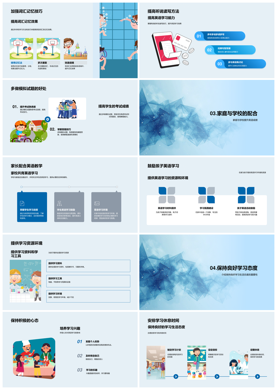 初三英语提分家校科学方法听说读写词汇积极心态PPT模板推荐