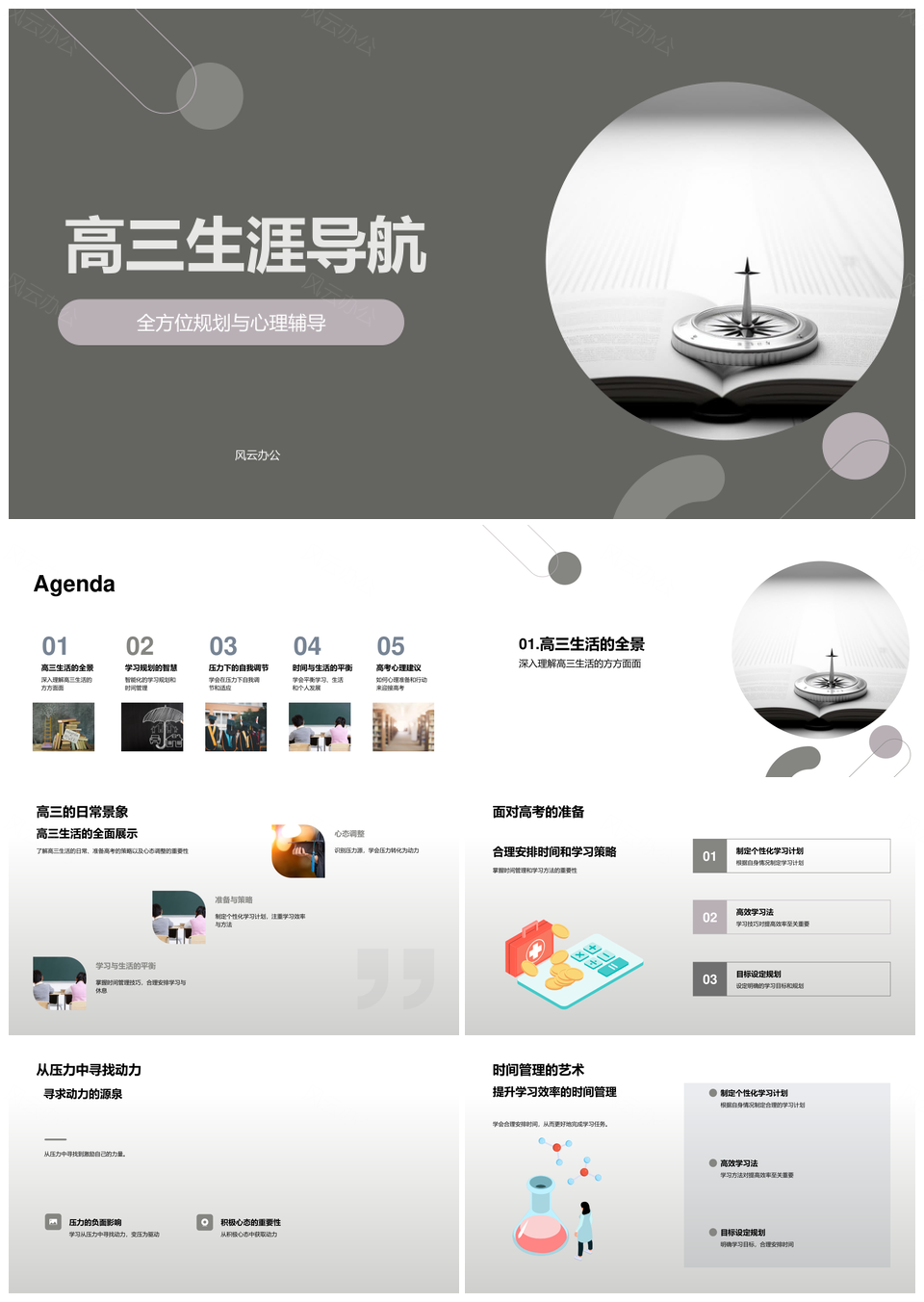 风云办公提供的高考压力时间管理学习规划指南PPT模板,下载格式为pptx,一共28页,作品中文字及图均可以修改和编辑,图片更改请在作品中右键图片并更换,文字修改请直接点击文字进行修改。