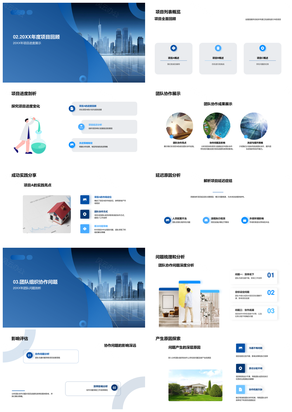 2025摩天大楼房产项目进度团队协作问题与未来规划PPT模板