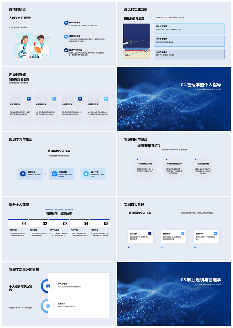 这是一张管理学理论发展实践与职业规划PPT模板,包含管理学理论、发展、实践、职业规划等主题内容,也可用作管理学理论发展实践、管理学理论发展职业规划、管理学理论发展、管理学理论实践、管理学发展实践、理论发展实践、理论发展职业规划、发展实践职业规划、管理学职业规划、管理学理论、管理学发展、管理学实践、理论发展、发展实践、实践职业规划等PPT场景使用。