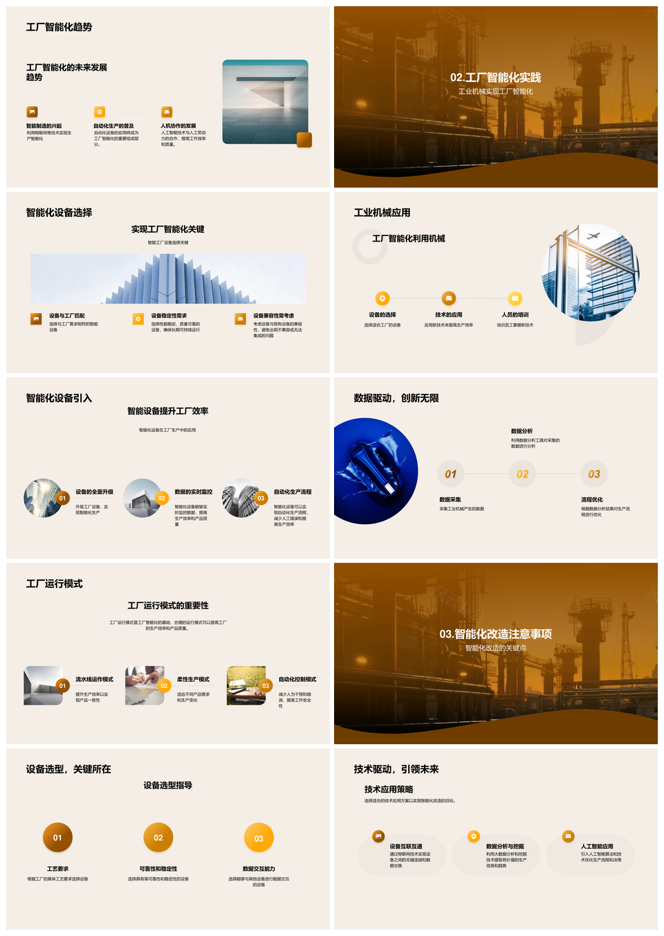 风云办公提供的工业机械智能化转型提升生产效率PPT模板,下载格式为pptx,一共33页,作品中文字及图均可以修改和编辑,图片更改请在作品中右键图片并更换,文字修改请直接点击文字进行修改。