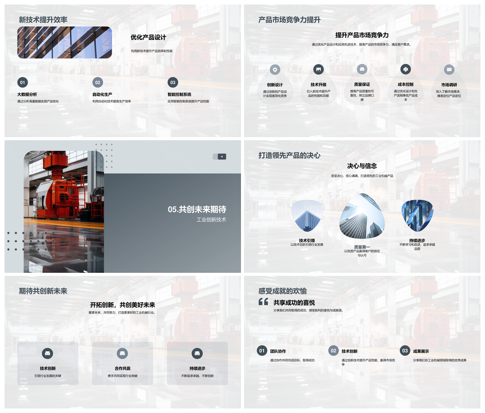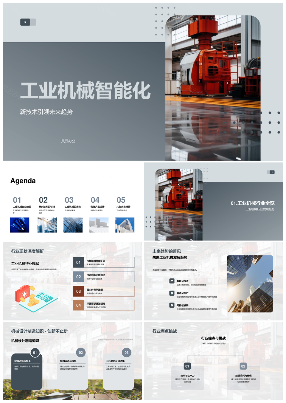 这是一张工业机械智能化技术应用与能效优化分析PPT模板,包含工业机械、智能化技术、应用、能效优化、分析等主题内容,也可用作工业机械智能化技术应用能效优化、智能化技术应用能效优化分析、工业机械智能化技术应用、智能化技术应用能效优化、技术应用能效优化分析、工业机械智能化能效优化、工业机械技术应用能效优化、智能化能效优化分析、工业机械能效优化分析、智能化技术应用、技术应用能效优化、能效优化分析、工业机械能效优化、工业机械技术应用、技术应用分析等PPT场景使用。 风云办公提供的工业机械智能化技术应用与能效优化分析PPT模板,下载格式为pptx,一共24页,作品中文字及图均可以修改和编辑,图片更改请在作品中右键图片并更换,文字修改请直接点击文字进行修改。