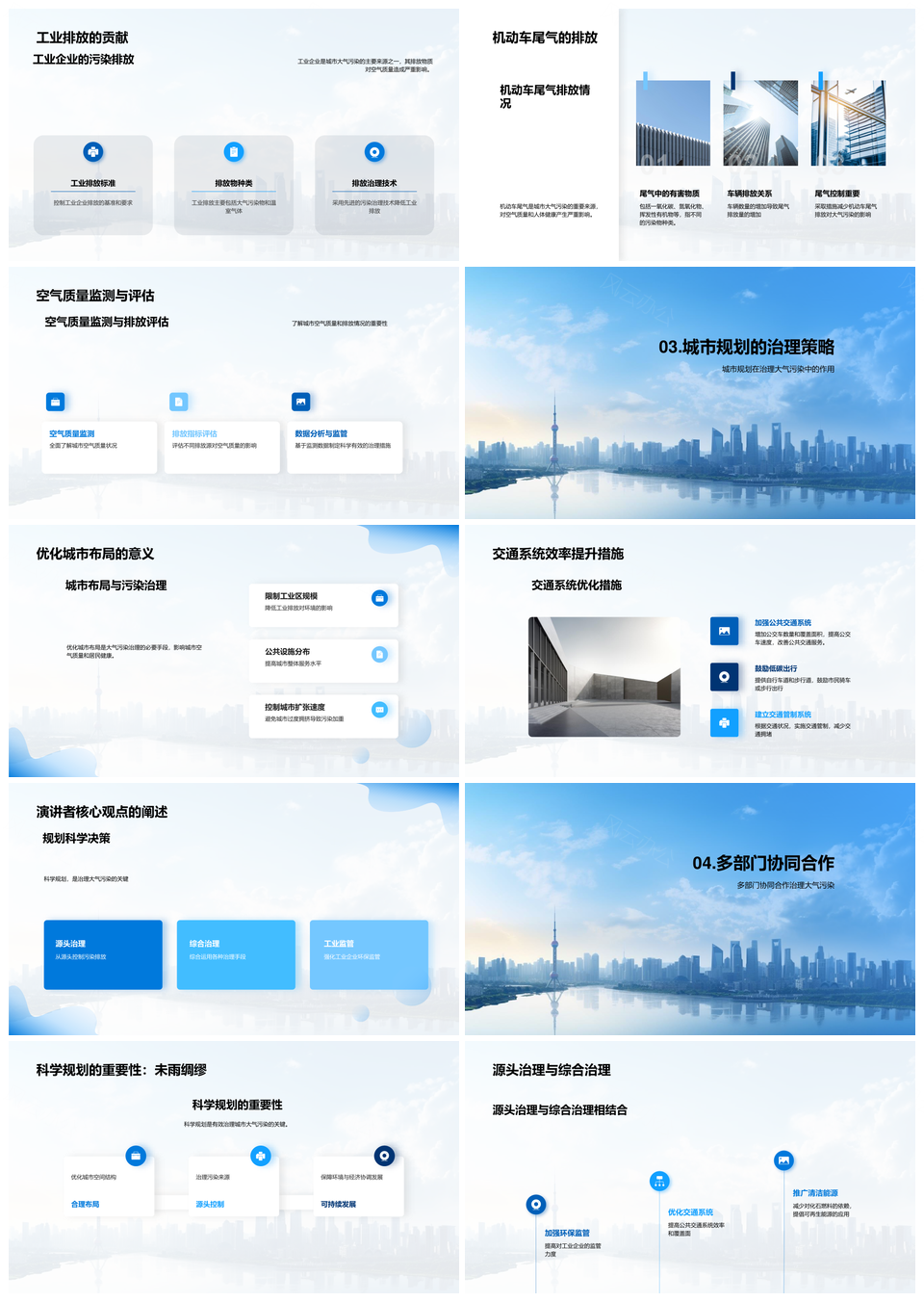 城市规划师治理大气污染工业排放天际线案例经验PPT模板推荐