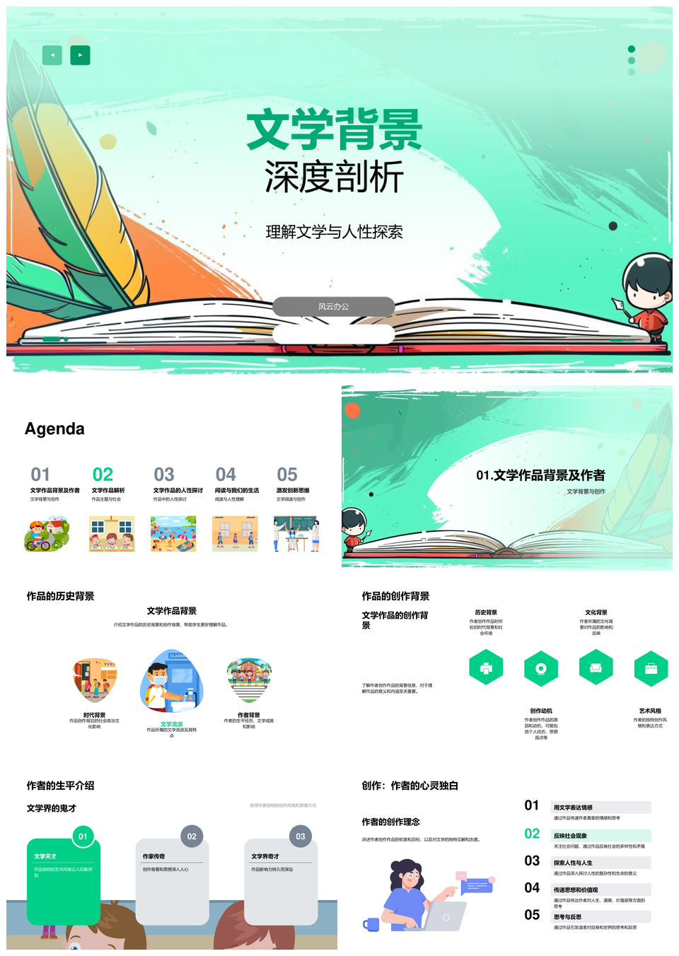 2025文学背景作品解析作者生平社会文化主题风格PPT模板推荐