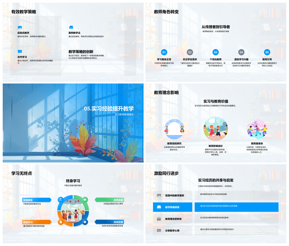 实习教学洞察教育理念实践案例教师终身学习PPT模板推荐