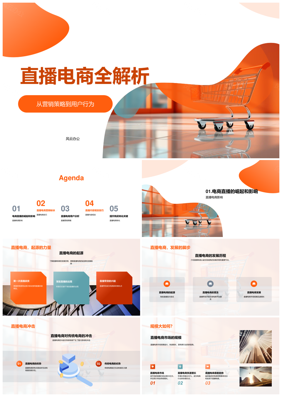 风云办公提供的直播电商策略用户行为与市场趋势解析PPT模板,下载格式为pptx,一共33页,作品中文字及图均可以修改和编辑,图片更改请在作品中右键图片并更换,文字修改请直接点击文字进行修改。