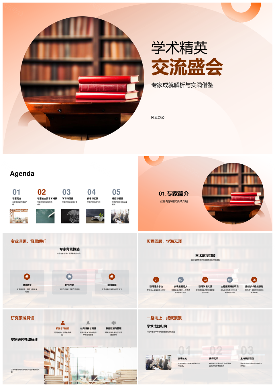 风云办公提供的学术精英盛会研讨成就创新与荣誉影响PPT模板,下载格式为pptx,一共33页,作品中文字及图均可以修改和编辑,图片更改请在作品中右键图片并更换,文字修改请直接点击文字进行修改。
