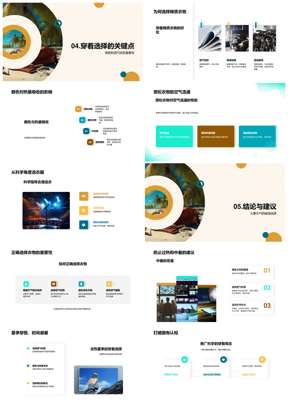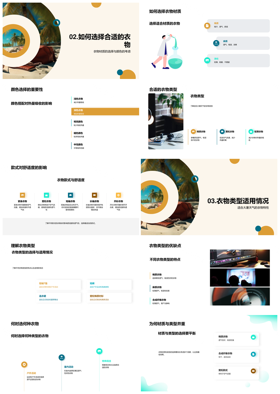 这是一张大暑穿搭防过热中暑衣物材质颜色PPT模板,包含大暑、穿搭、防、过热、中暑、衣物、材质、颜色等主题内容,也可用作大暑穿搭防过热衣物、大暑防过热中暑衣物、大暑衣物材质颜色、大暑穿搭防过热、防过热中暑衣物、穿搭防过热衣物、防过热衣物材质、中暑衣物材质、衣物材质颜色、大暑防过热衣物、大暑衣物材质、大暑穿搭、大暑防过热、穿搭防过热、防过热衣物等PPT场景使用。