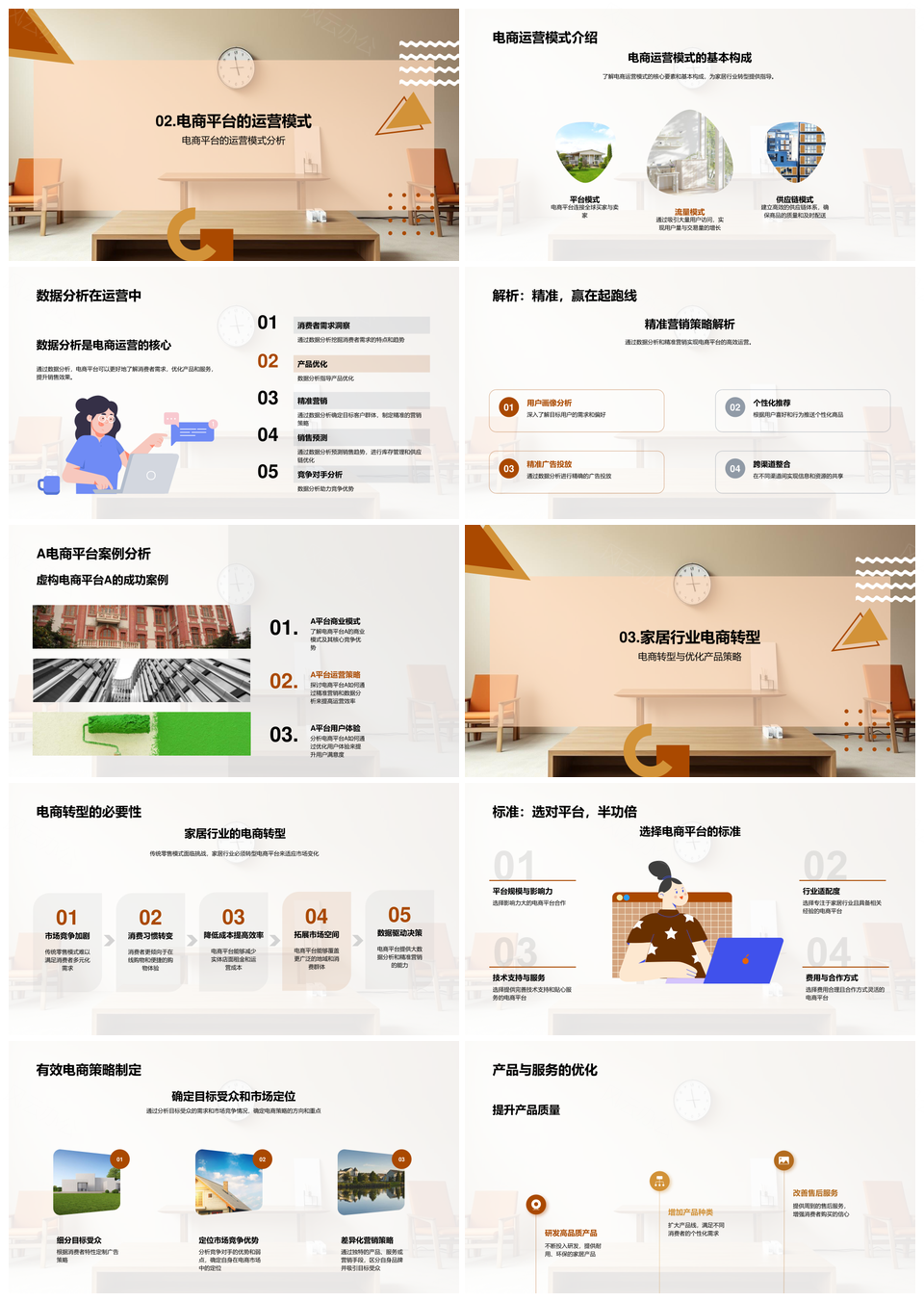 这是一张家居电商崛起机遇挑战平台策略数据精准营销PPT模板,包含家居电商、崛起、机遇、挑战、平台、策略、数据、精准营销等主题内容,也可用作家居电商崛起机遇挑战、家居电商平台策略数据、家居电商数据精准营销、崛起机遇挑战平台策略、机遇挑战平台策略数据、挑战平台策略数据精准营销、平台策略数据精准营销、家居电商精准营销、家居电商平台策略、平台策略数据精准、家居电商数据策略、平台策略数据营销、精准营销策略数据、数据精准营销平台、电商平台策略数据等PPT场景使用。 风云办公提供的家居电商崛起机遇挑战平台策略数据精准营销PPT模板,下载格式为pptx,一共28页,作品中文字及图均可以修改和编辑,图片更改请在作品中右键图片并更换,文字修改请直接点击文字进行修改。