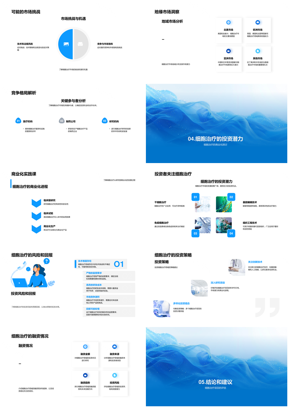 细胞治疗生物医疗投资技术市场机遇挑战商业化进程PPT模板推荐