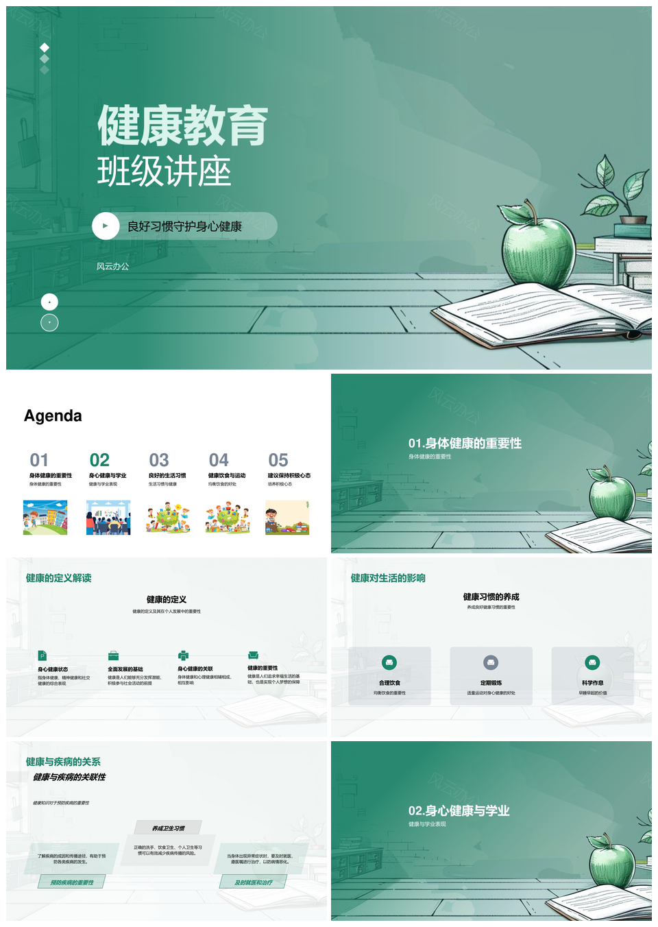 风云办公提供的健康教育身心健康习惯与压力管理讲座PPT模板,下载格式为pptx,一共23页,作品中文字及图均可以修改和编辑,图片更改请在作品中右键图片并更换,文字修改请直接点击文字进行修改。