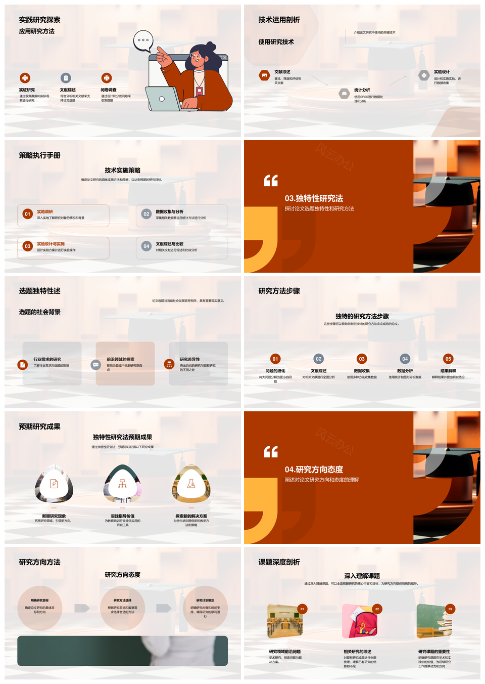 风云办公提供的专科论文选题研究方法技术策略探索PPT模板,下载格式为pptx,一共23页,作品中文字及图均可以修改和编辑,图片更改请在作品中右键图片并更换,文字修改请直接点击文字进行修改。