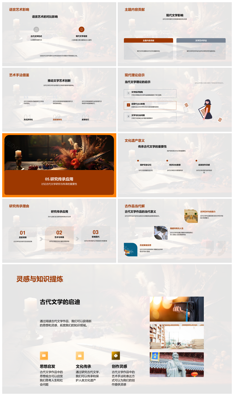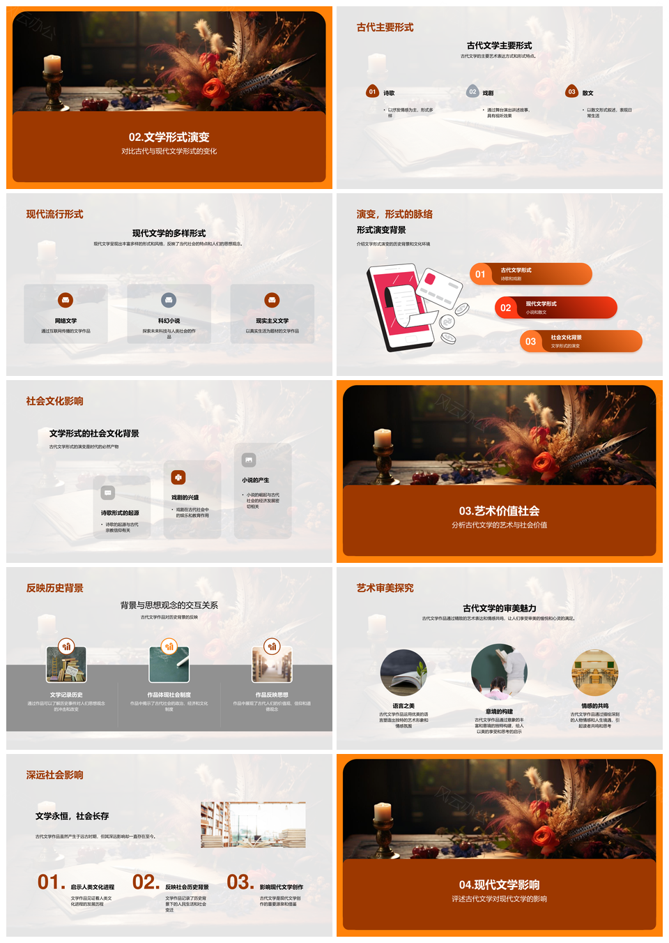 风云办公提供的古代文学源流艺术形式及现代影响PPT模板,下载格式为pptx,一共27页,作品中文字及图均可以修改和编辑,图片更改请在作品中右键图片并更换,文字修改请直接点击文字进行修改。