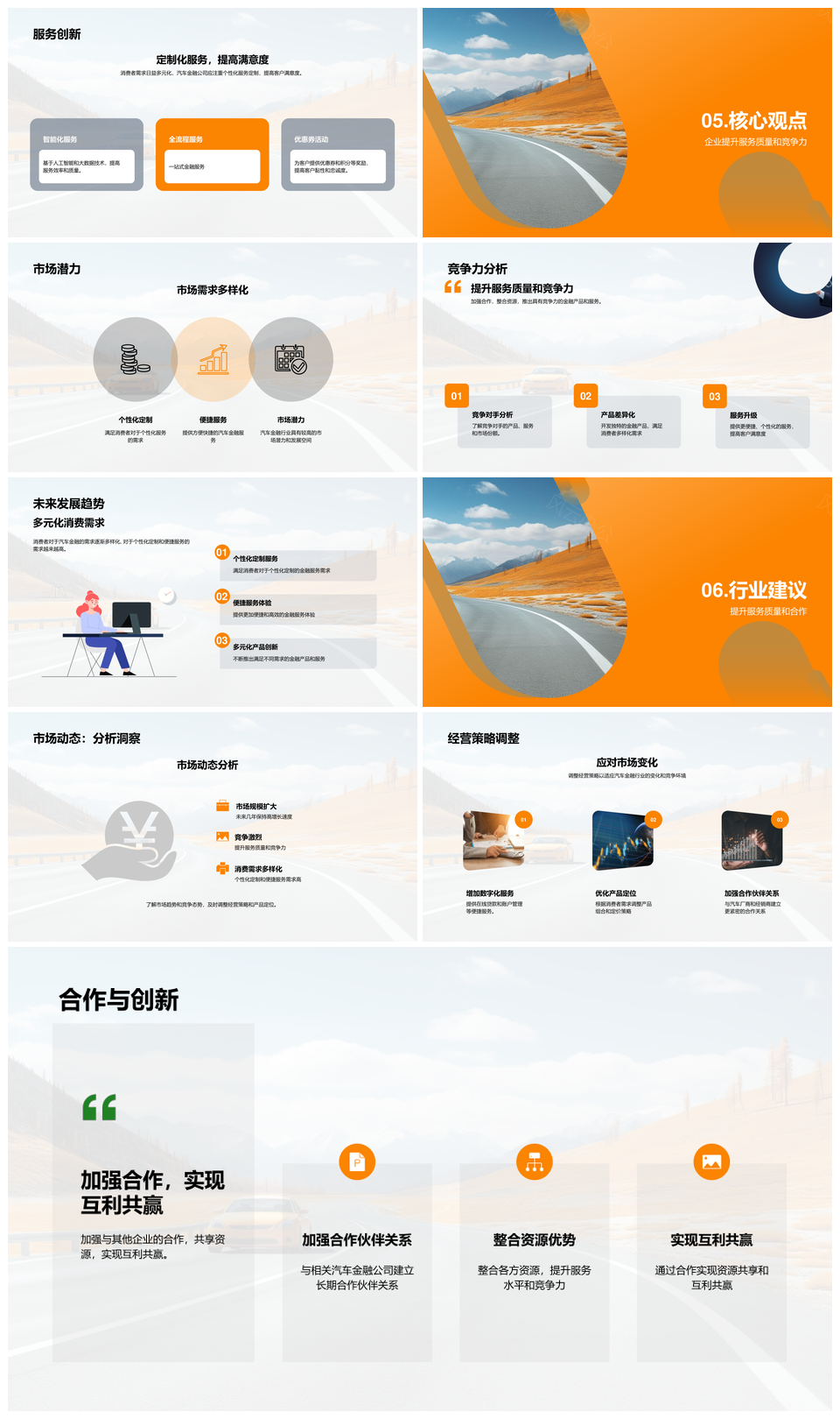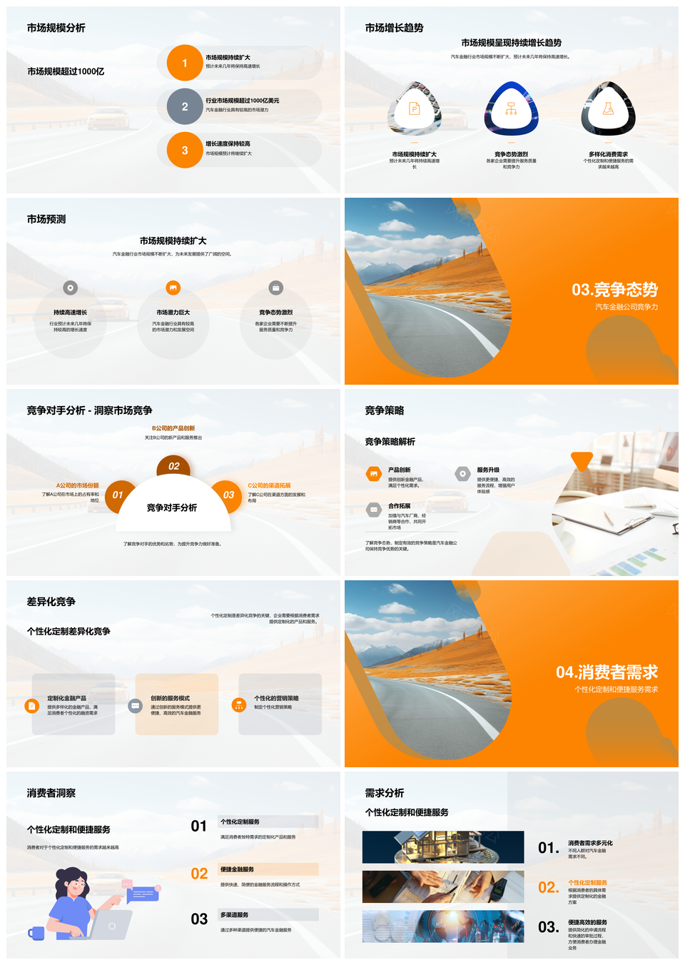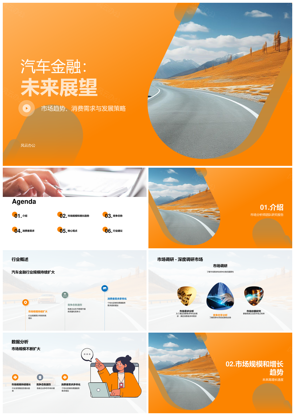 风云办公提供的汽车金融行业未来创新服务趋势分析PPT模板,下载格式为pptx,一共27页,作品中文字及图均可以修改和编辑,图片更改请在作品中右键图片并更换,文字修改请直接点击文字进行修改。