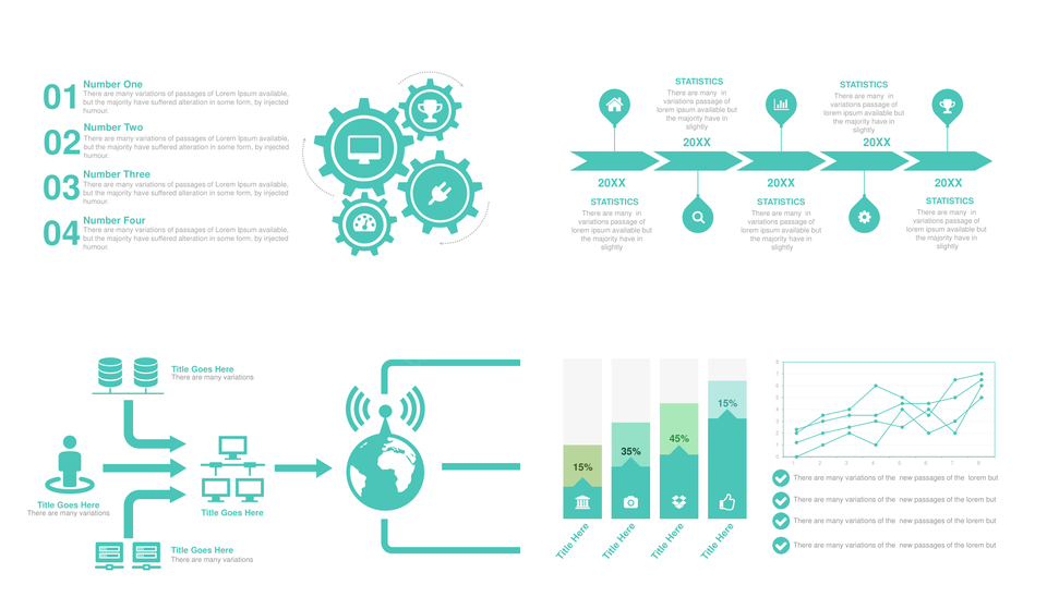 这是一张青绿色动态医疗并列关系数据关系PPT图表合集,包含青绿色、医疗、并列关系、数据关系、图表合集等主题内容,也可用作青绿色、动态、医疗、并列关系、数据关系、PPT图表、合集