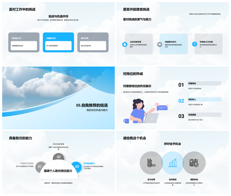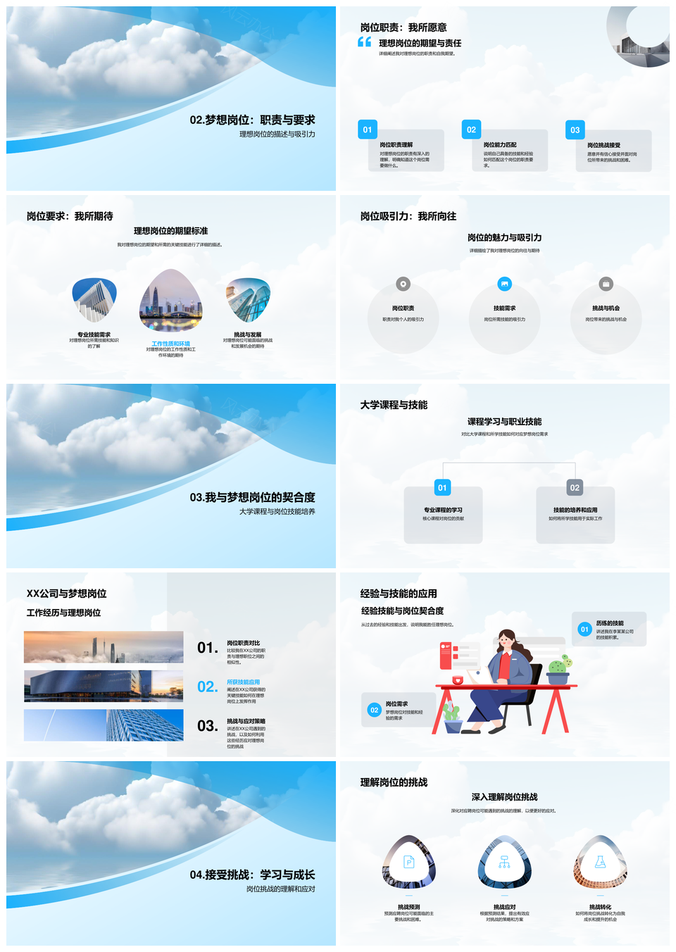 理想求职简历品牌教育经验技能梦幻云彩梦想之旅PPT模板推荐