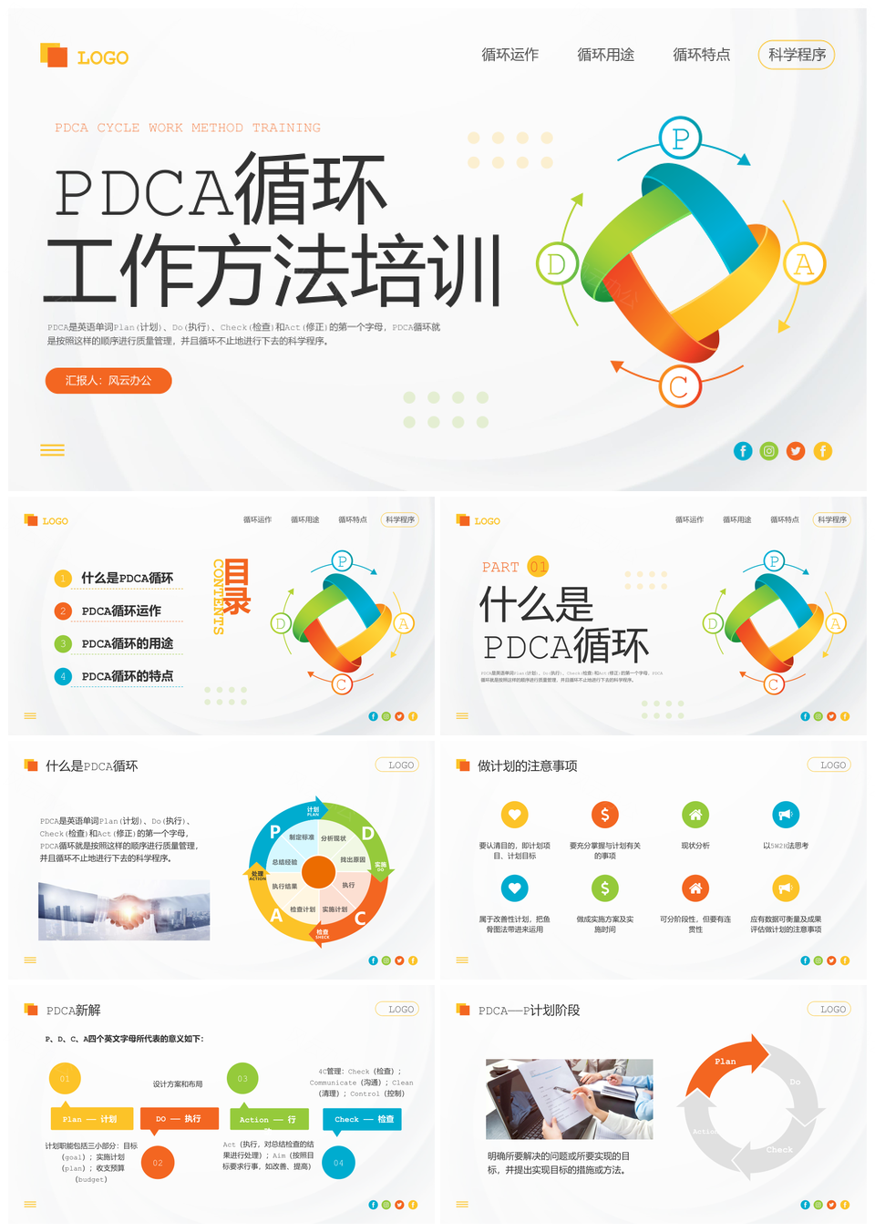橙色简约医疗护理PDCA品管圈培训动态PPT模板推荐