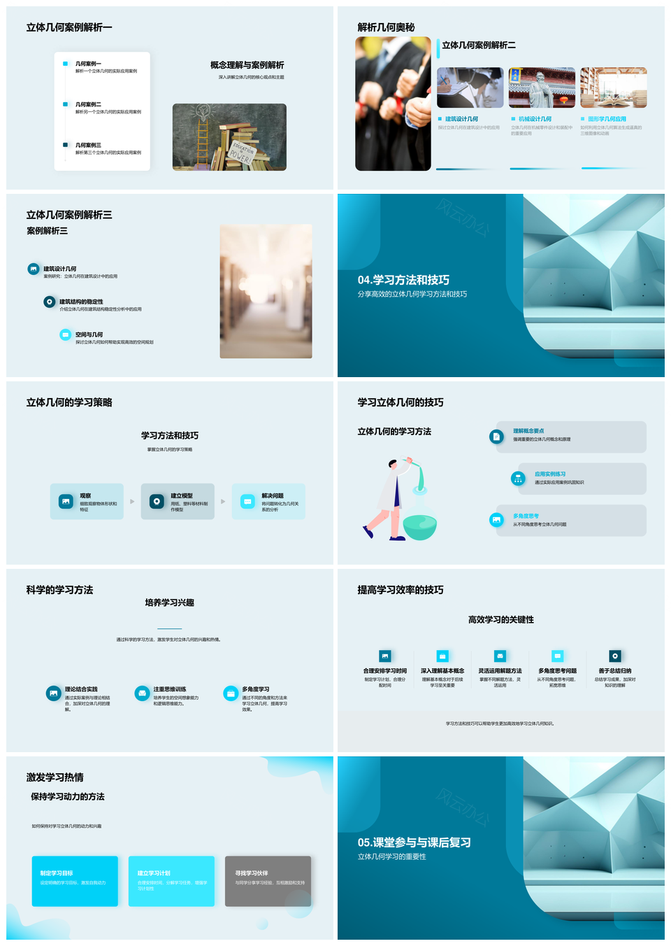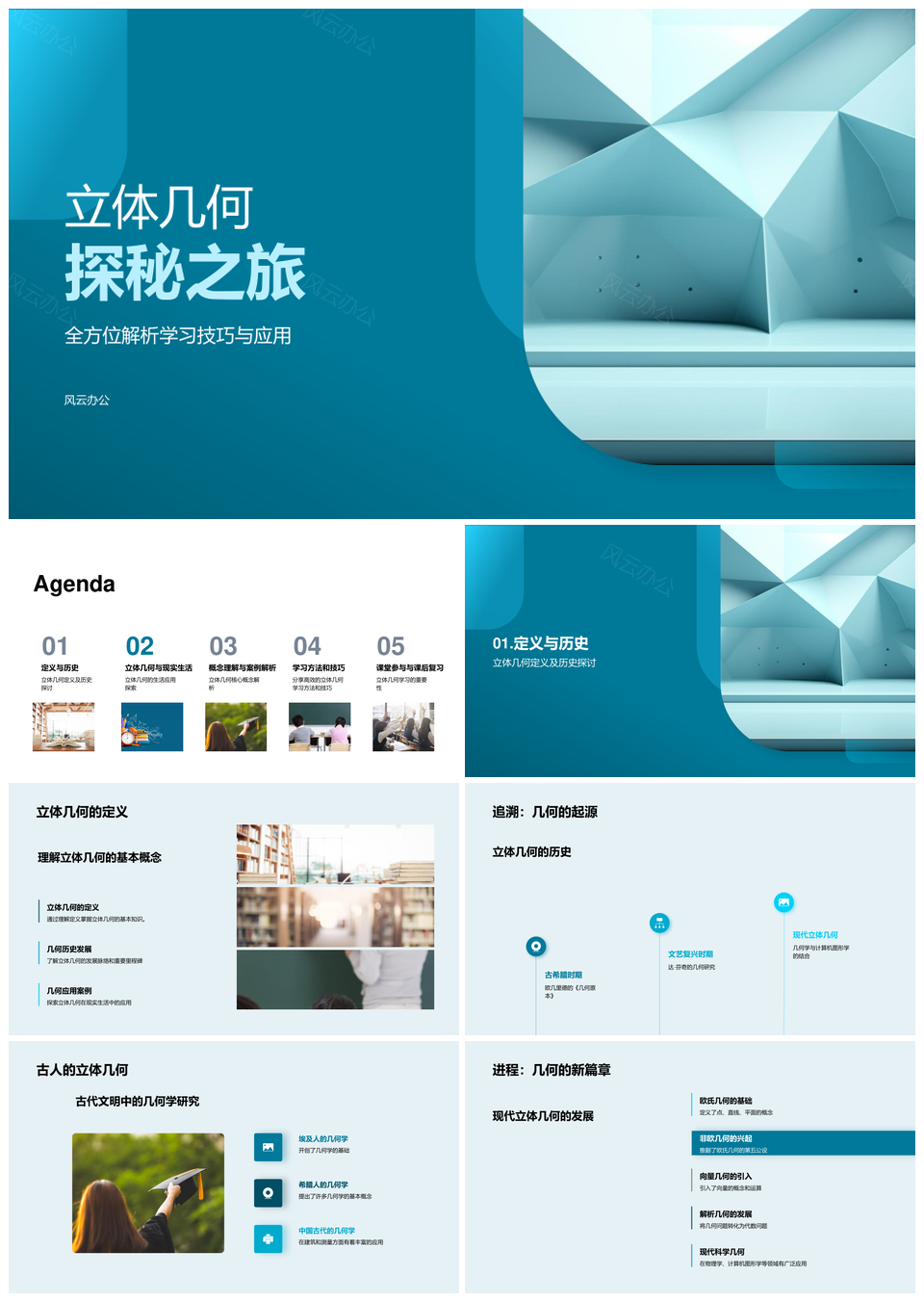 风云办公提供的立体几何教学应用与建筑历史案例PPT模板,下载格式为pptx,一共33页,作品中文字及图均可以修改和编辑,图片更改请在作品中右键图片并更换,文字修改请直接点击文字进行修改。