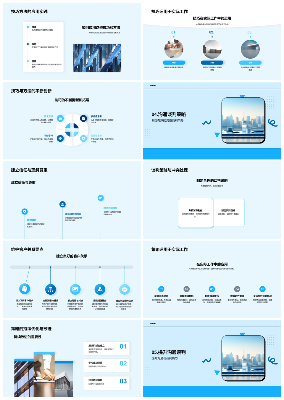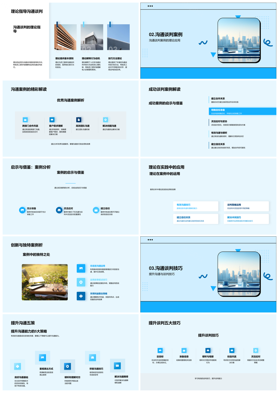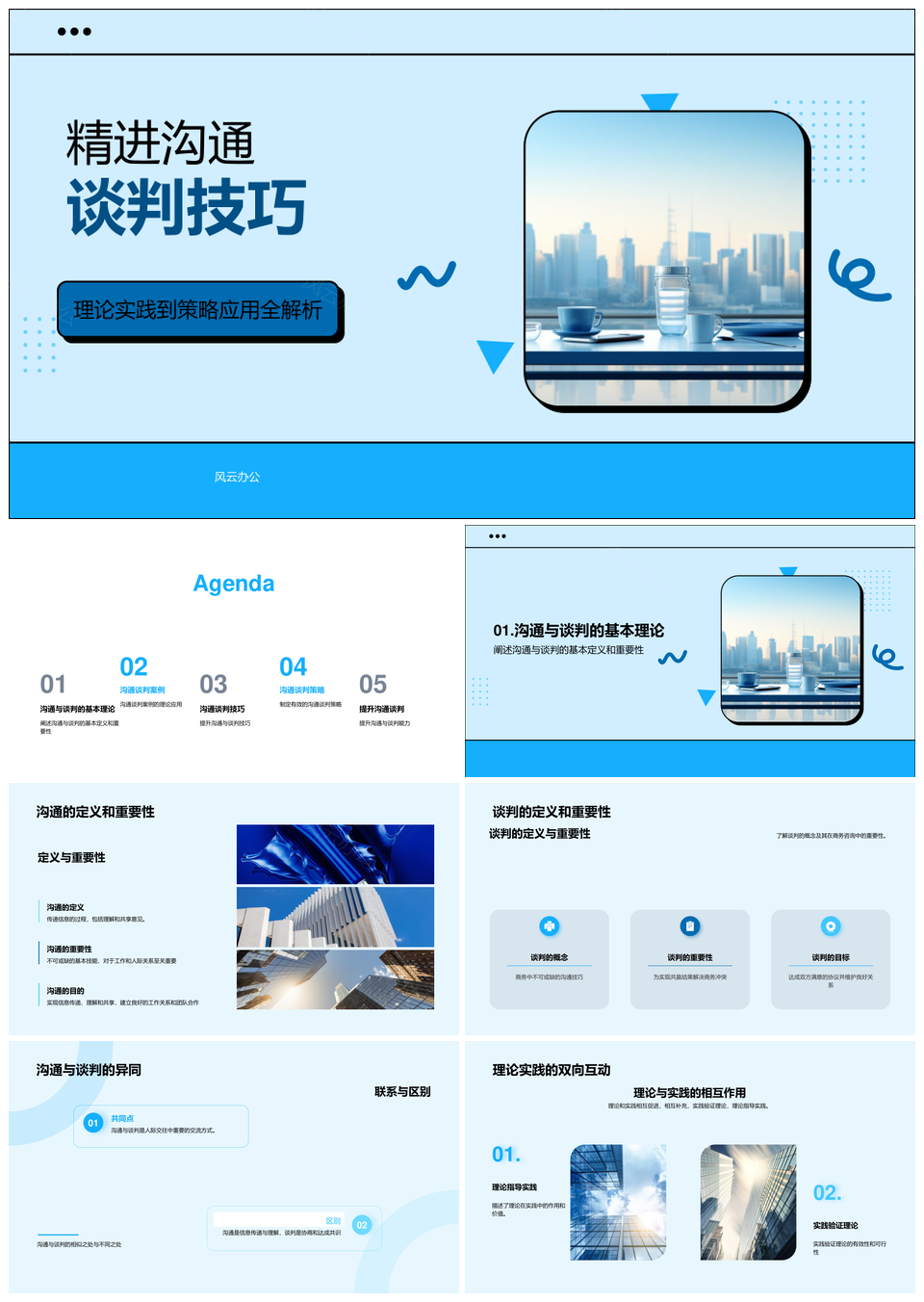 风云办公提供的商务沟通谈判策略案例精进PPT模板,下载格式为pptx,一共33页,作品中文字及图均可以修改和编辑,图片更改请在作品中右键图片并更换,文字修改请直接点击文字进行修改。