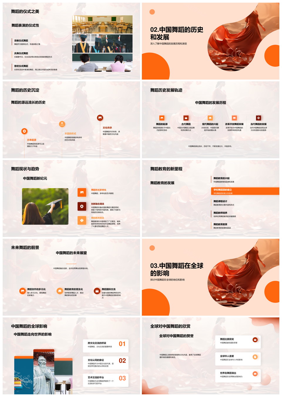 这是一张舞动中华中国舞蹈传统现代交融全球影响PPT模板,包含舞动、中华、中国、舞蹈、传统、现代、交融、全球、影响等主题内容,也可用作舞动中华中国舞蹈传统、中华中国舞蹈传统现代、中国舞蹈传统现代交融、舞蹈传统现代交融全球、传统现代交融全球影响、中华传统现代交融全球、现代交融全球影响、中国舞蹈全球影响、中华中国舞蹈、中华传统现代、中国舞蹈传统、传统现代交融、现代交融全球、交融全球影响、全球影响等PPT场景使用。 风云办公提供的舞动中华中国舞蹈传统现代交融全球影响PPT模板,下载格式为pptx,一共33页,作品中文字及图均可以修改和编辑,图片更改请在作品中右键图片并更换,文字修改请直接点击文字进行修改。