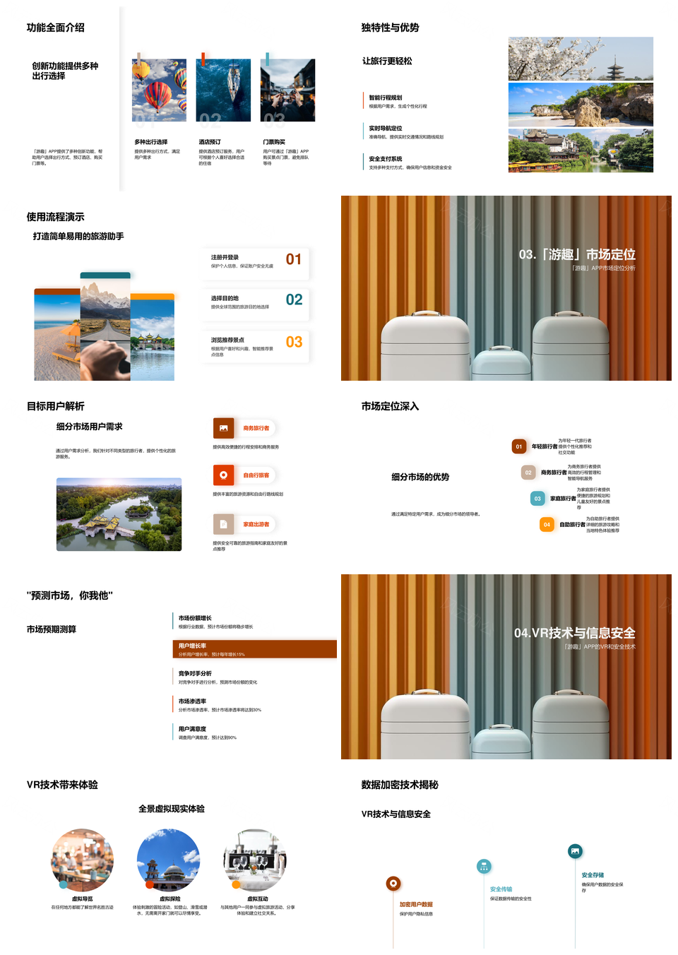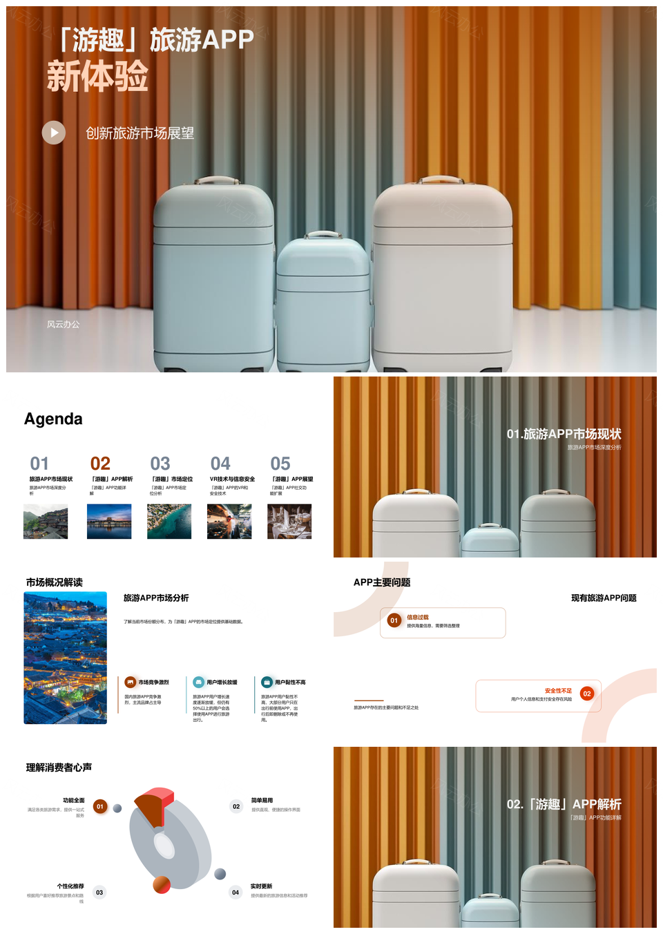 这是一张游趣旅游APPVR技术信息安全旅行箱新体验PPT模板,包含游趣、旅游APP、VR技术、信息安全、旅行箱、新体验等主题内容,也可用作游趣旅游APPVR技术、旅游APPVR技术信息安全、APPVR技术信息安全旅行箱、VR技术信息安全旅行箱新体验、游趣旅游APP、旅游APPVR技术、APPVR技术信息安全、VR技术信息安全旅行箱、信息安全旅行箱新体验、游趣旅游、旅游APP、APPVR技术、VR技术信息安全、信息安全旅行箱、旅行箱新体验等PPT场景使用。 风云办公提供的游趣旅游APPVR技术信息安全旅行箱新体验PPT模板,下载格式为pptx,一共23页,作品中文字及图均可以修改和编辑,图片更改请在作品中右键图片并更换,文字修改请直接点击文字进行修改。
