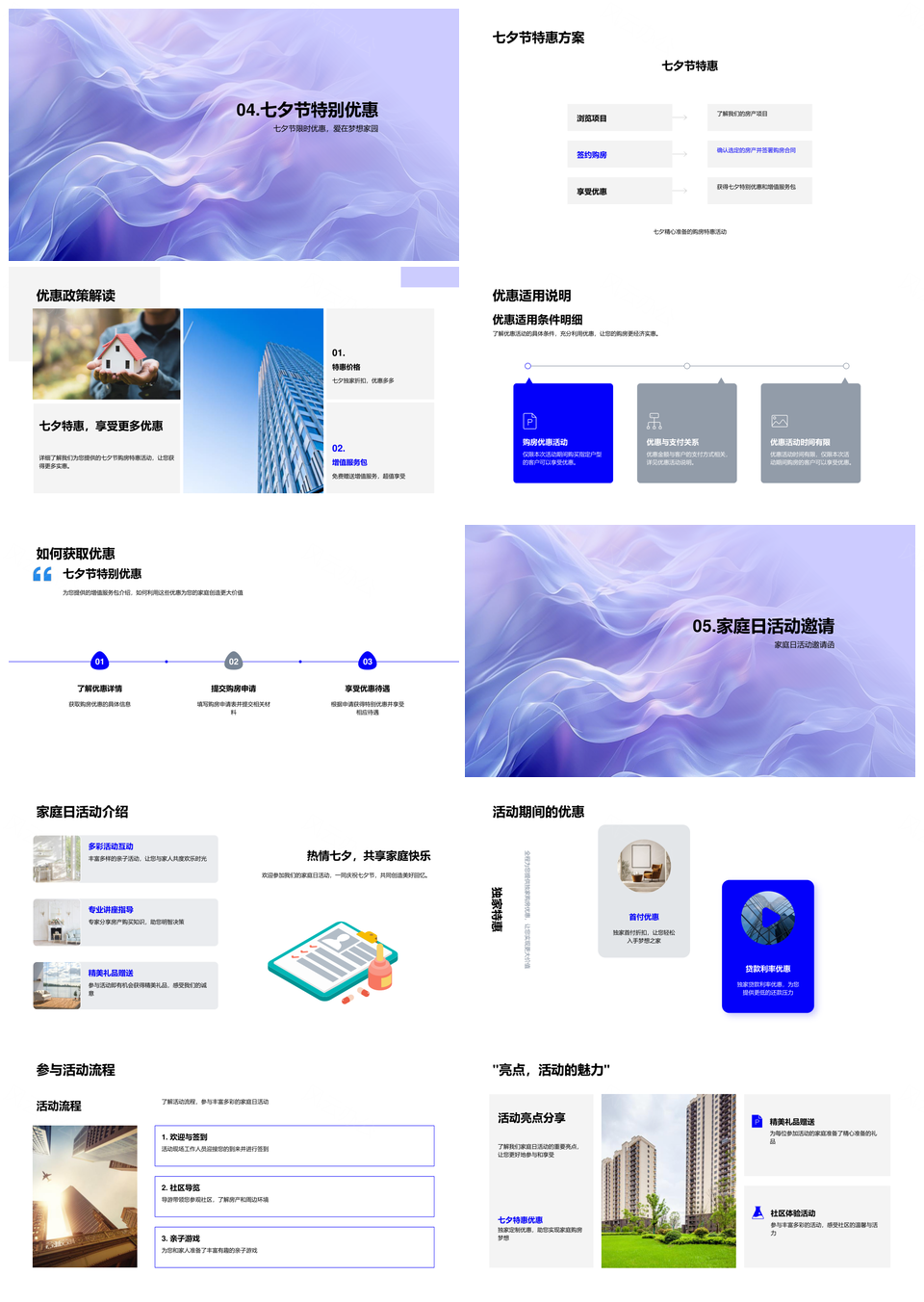 风云办公提供的七夕家庭购房优惠全流程指南PPT模板,下载格式为pptx,一共28页,作品中文字及图均可以修改和编辑,图片更改请在作品中右键图片并更换,文字修改请直接点击文字进行修改。