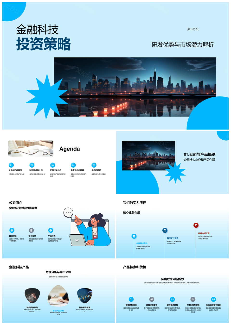 风云办公提供的金融科技研发市场融资数据体验策略PPT模板,下载格式为pptx,一共28页,作品中文字及图均可以修改和编辑,图片更改请在作品中右键图片并更换,文字修改请直接点击文字进行修改。