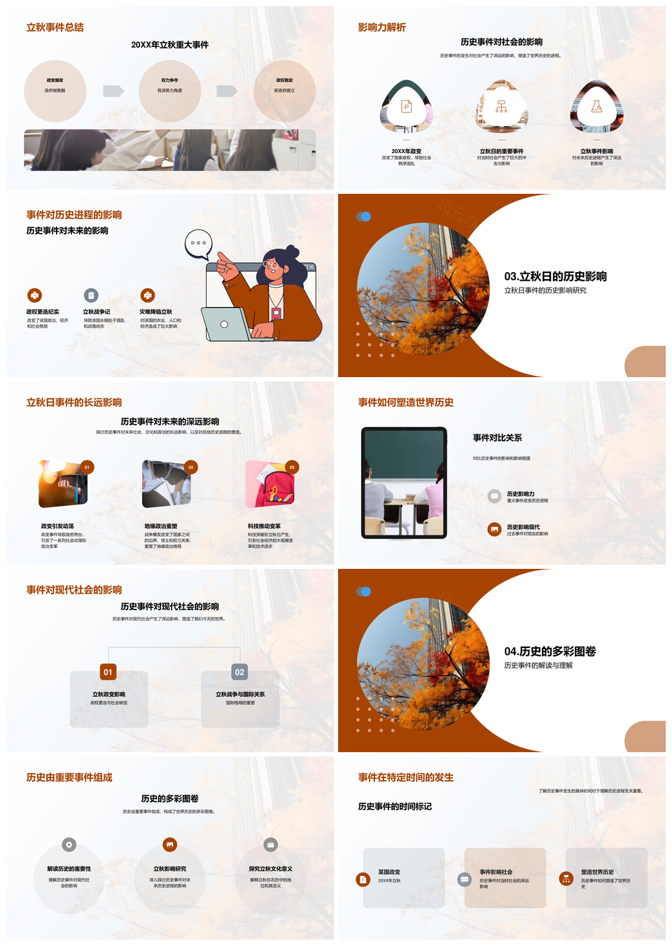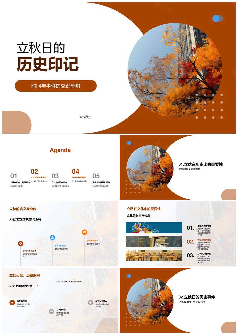 风云办公提供的立秋历史印记事件思辨古历图卷PPT模板,下载格式为pptx,一共23页,作品中文字及图均可以修改和编辑,图片更改请在作品中右键图片并更换,文字修改请直接点击文字进行修改。