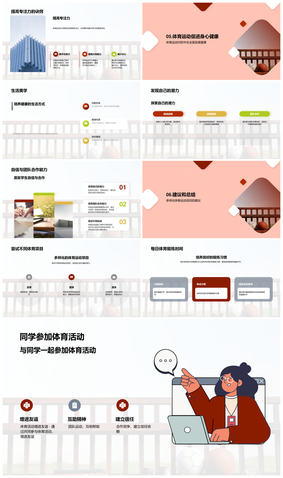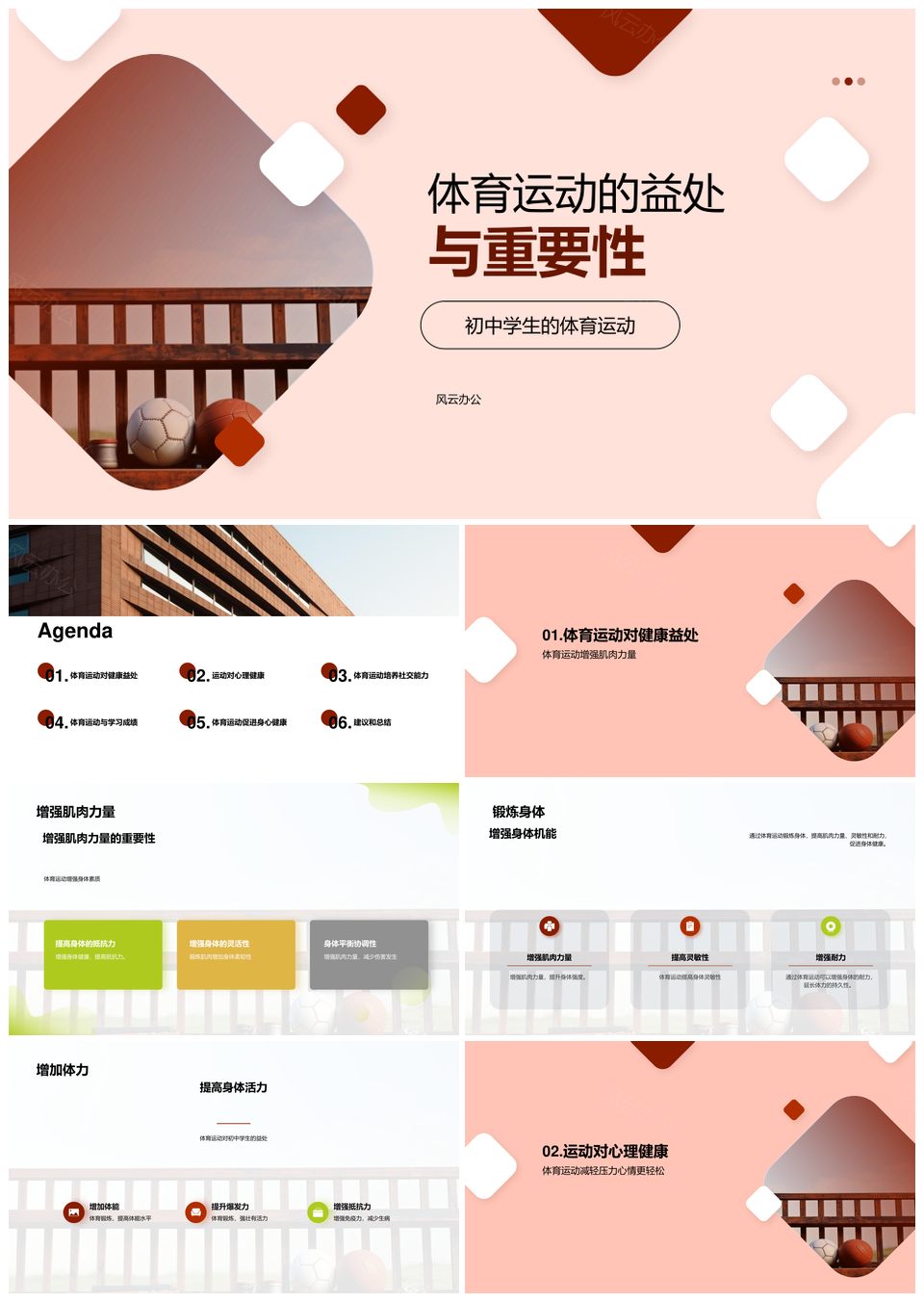 这是一张初中体育运动强肌力灵敏耐力促健康用器材PPT模板,包含初中、体育运动、强肌力、灵敏、耐力、健康、器材等主题内容,也可用作初中体育运动强肌力灵敏、体育运动强肌力灵敏耐力、强肌力灵敏耐力促健康、灵敏耐力促健康用器材、初中体育运动促健康用器材、初中体育运动强肌力、体育运动强肌力灵敏、强肌力灵敏耐力、灵敏耐力促健康、耐力促健康用器材、初中体育运动促健康、初中体育运动、体育运动强肌力、强肌力灵敏、灵敏耐力等PPT场景使用。 风云办公提供的初中体育运动强肌力灵敏耐力促健康用器材PPT模板,下载格式为pptx,一共27页,作品中文字及图均可以修改和编辑,图片更改请在作品中右键图片并更换,文字修改请直接点击文字进行修改。