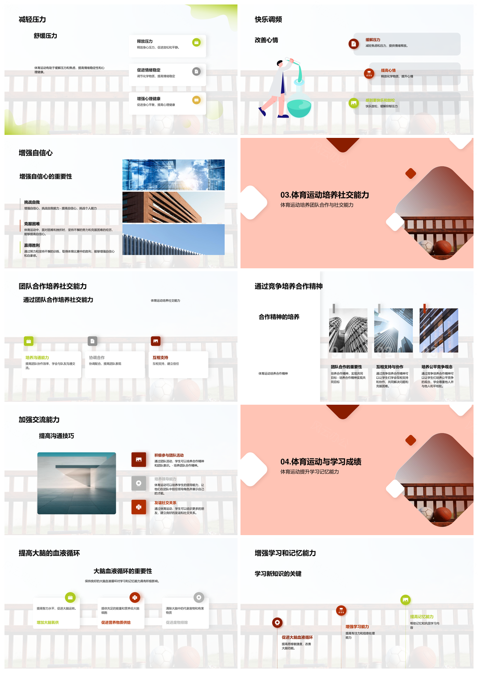 体育运动强心肺增肌灵活减压筑健康生活PPT模板