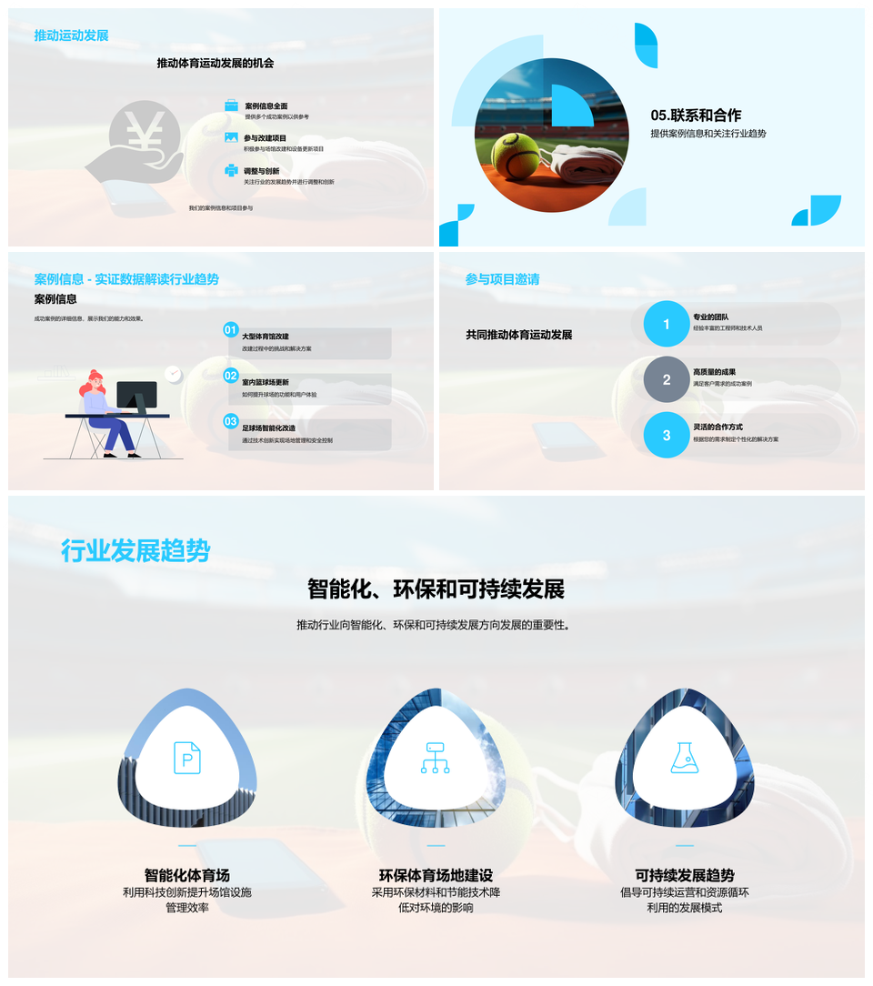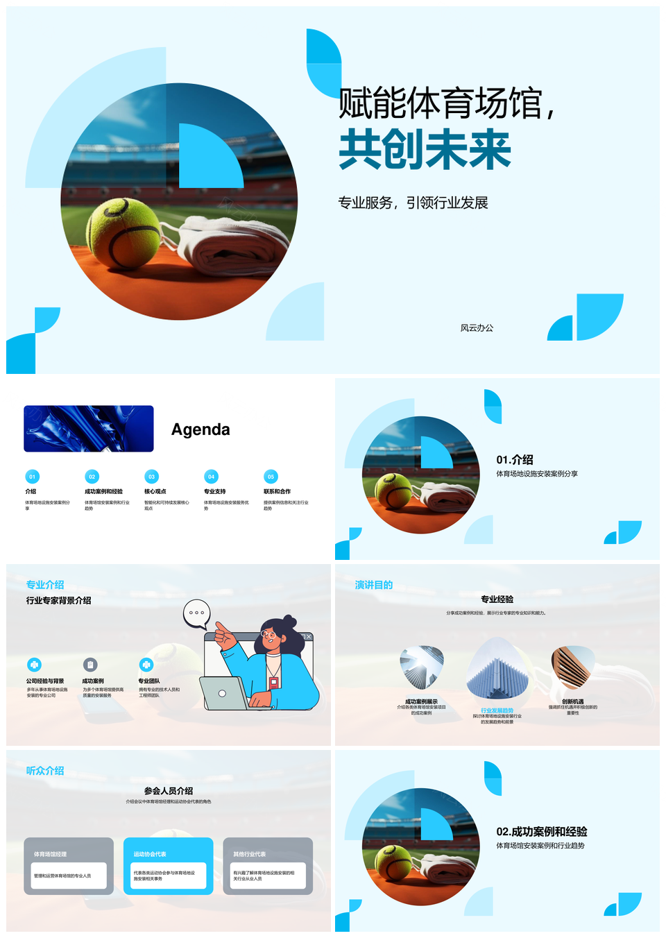 风云办公提供的体育场馆设施产品案例经验专家分享PPT模板,下载格式为pptx,一共23页,作品中文字及图均可以修改和编辑,图片更改请在作品中右键图片并更换,文字修改请直接点击文字进行修改。