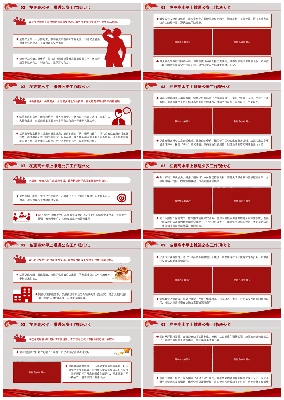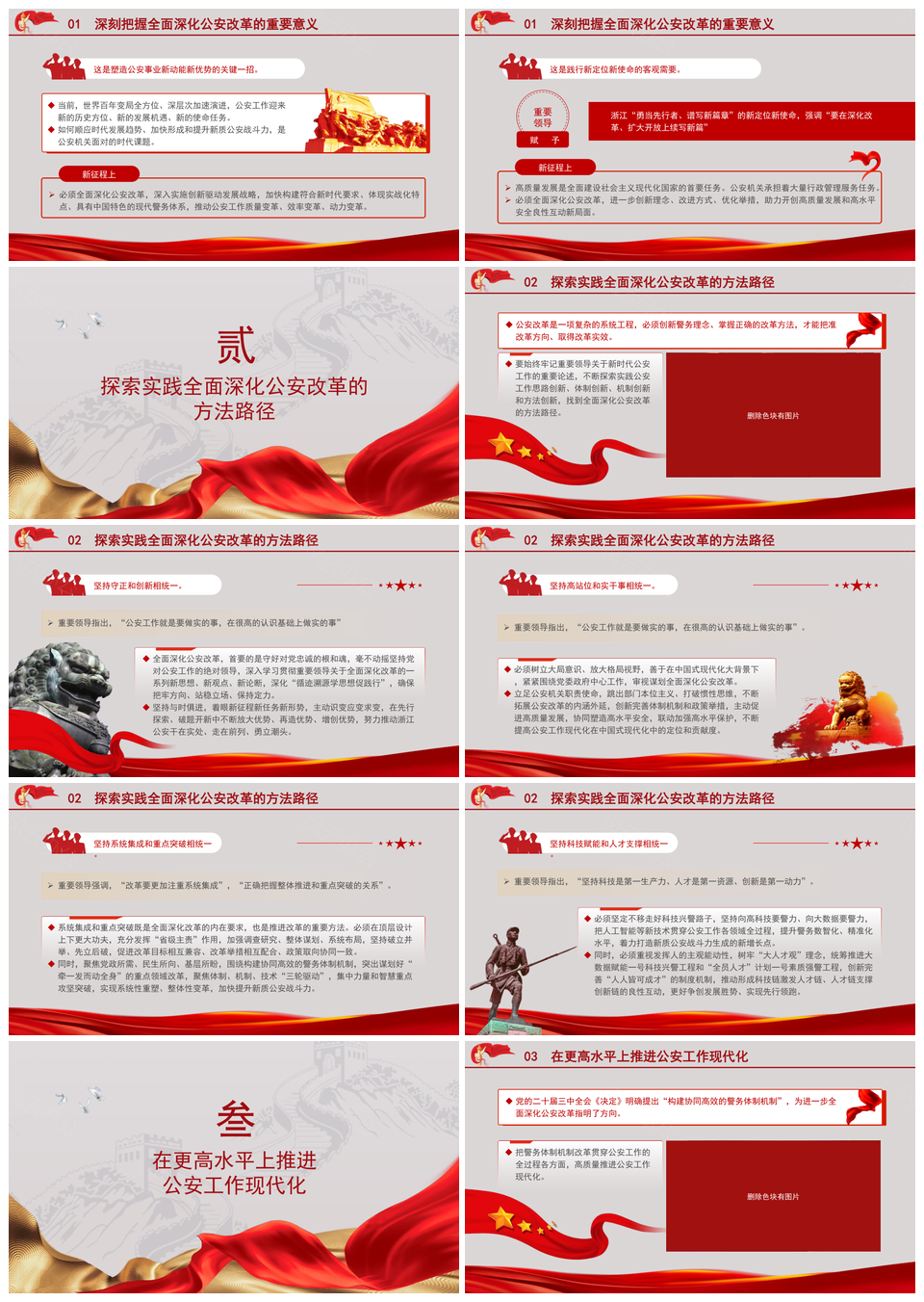 这是一张公安学习二十大深化公安改革服务中国式现代化PPT模板,包含公安、学习、二十大、深化、公安改革、服务、中国式、现代化等主题内容,也可用作公安学习二十大深化公安改革、深化公安改革服务中国式现代化、公安学习二十大深化、公安学习二十大、学习二十大深化、二十大深化公安改革、深化公安改革服务、公安改革服务中国式现代化、学习深化公安改革、公安学习、学习二十大、二十大深化、深化公安改革、公安改革服务、服务中国式现代化等PPT场景使用。 风云办公提供的公安学习二十大深化公安改革服务中国式现代化PPT模板,下载格式为pptx,一共28页,作品中文字及图均可以修改和编辑,图片更改请在作品中右键图片并更换,文字修改请直接点击文字进行修改。