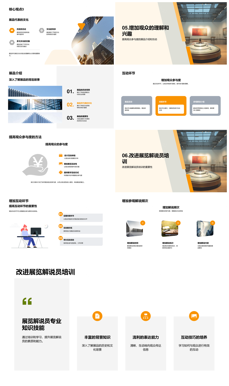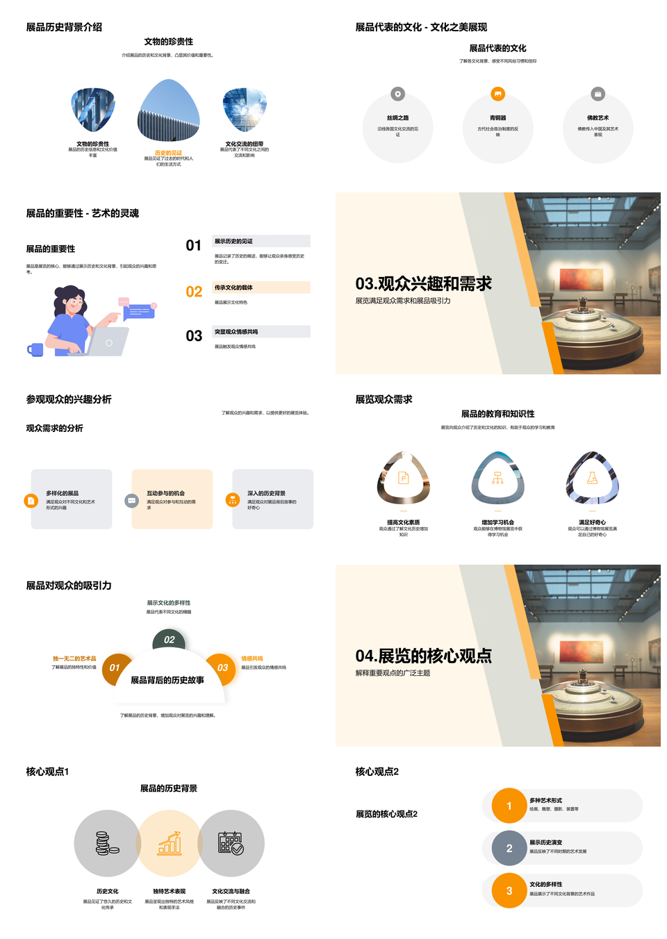 风云办公提供的博物馆展解说员观众探展品主题意义PPT模板,下载格式为pptx,一共27页,作品中文字及图均可以修改和编辑,图片更改请在作品中右键图片并更换,文字修改请直接点击文字进行修改。