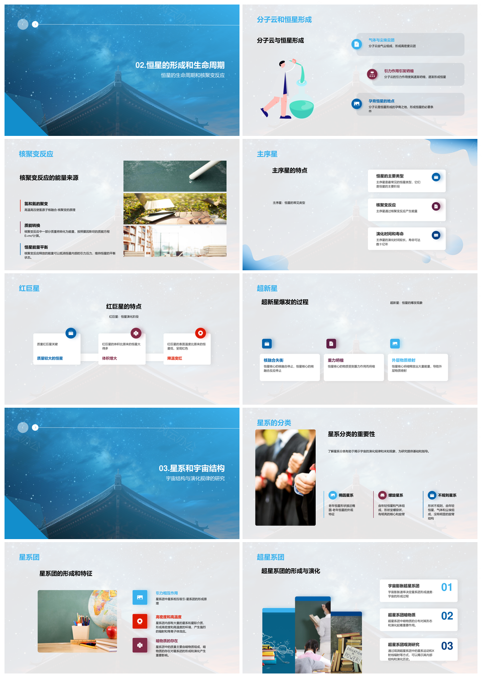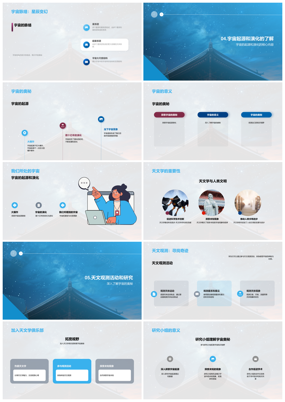 这是一张天文教授携本科生探索宇宙大爆炸星系演化PPT模板,包含天文教授、本科生、宇宙大爆炸、星系演化等主题内容,也可用作天文教授本科生探索宇宙大爆炸、天文教授探索宇宙大爆炸星系演化、本科生探索宇宙大爆炸星系演化、天文教授本科生探索星系演化、探索宇宙大爆炸星系演化、天文教授本科生探索、本科生探索宇宙大爆炸、天文教授宇宙大爆炸星系演化、天文教授探索星系演化、本科生探索星系演化、天文教授本科生、探索宇宙大爆炸、宇宙大爆炸星系演化、本科生探索、探索星系演化等PPT场景使用。 风云办公提供的天文教授携本科生探索宇宙大爆炸星系演化PPT模板,下载格式为pptx,一共29页,作品中文字及图均可以修改和编辑,图片更改请在作品中右键图片并更换,文字修改请直接点击文字进行修改。
