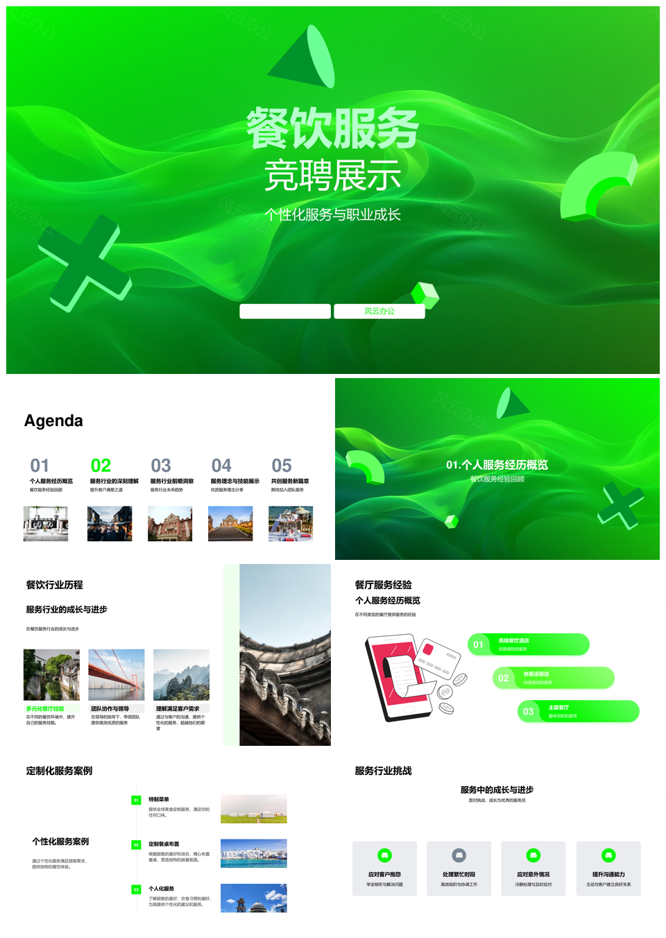 这是一张餐饮服务竞聘展示专业技能职业成长定制服务PPT模板,包含餐饮服务、竞聘、展示、专业技能、职业成长、定制服务等主题内容,也可用作餐饮服务竞聘展示专业技能、竞聘展示专业技能职业成长、展示专业技能职业成长定制服务、餐饮服务竞聘展示、竞聘展示专业技能、展示专业技能职业成长、专业技能职业成长定制服务、餐饮服务竞聘、竞聘展示、展示专业技能、专业技能职业成长、职业成长定制服务等PPT场景使用。 风云办公提供的餐饮服务竞聘展示专业技能职业成长定制服务PPT模板,下载格式为pptx,一共28页,作品中文字及图均可以修改和编辑,图片更改请在作品中右键图片并更换,文字修改请直接点击文字进行修改。