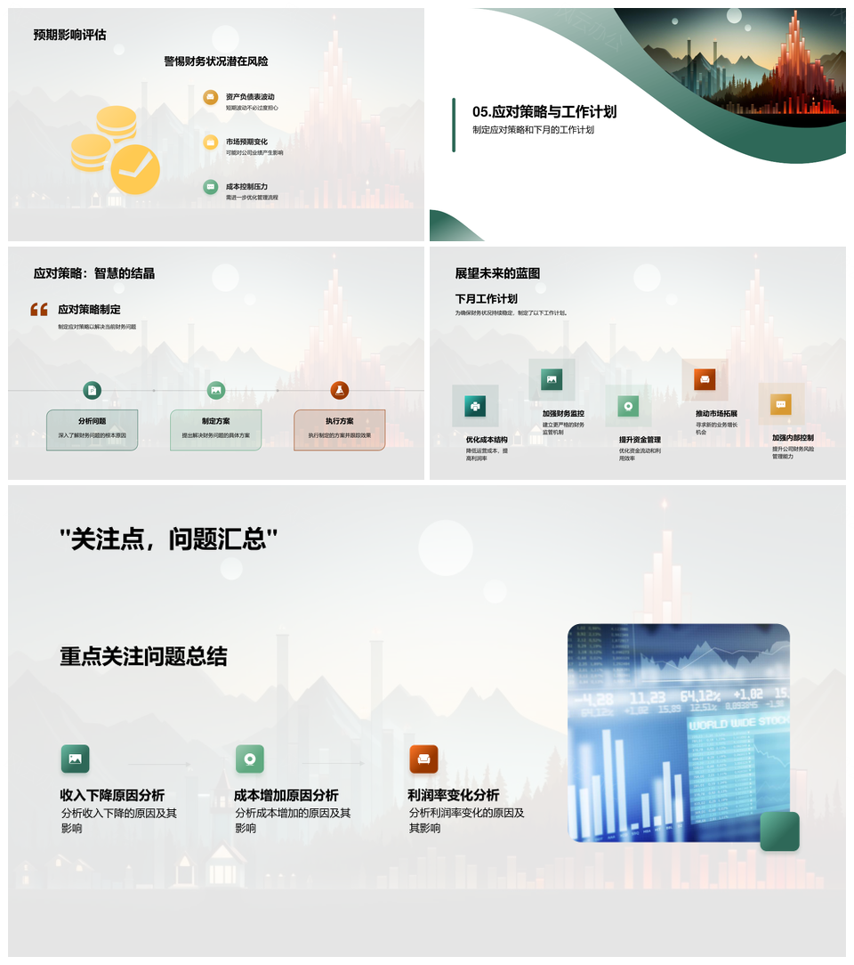 公司财务月度分析预测决策收支净利资产负债PPT模板