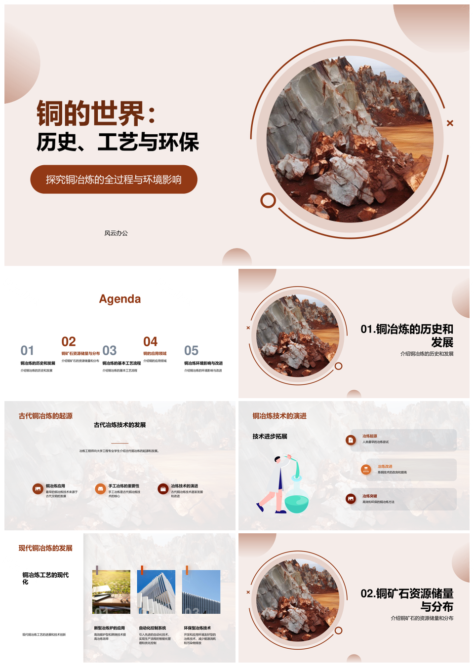 风云办公提供的铜冶炼古今工艺演进与工程应用PPT模板,下载格式为pptx,一共28页,作品中文字及图均可以修改和编辑,图片更改请在作品中右键图片并更换,文字修改请直接点击文字进行修改。