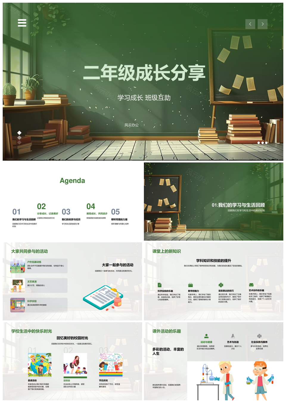 风云办公提供的二年级成长分享师生共学互助班会活动PPT模板,下载格式为pptx,一共28页,作品中文字及图均可以修改和编辑,图片更改请在作品中右键图片并更换,文字修改请直接点击文字进行修改。
