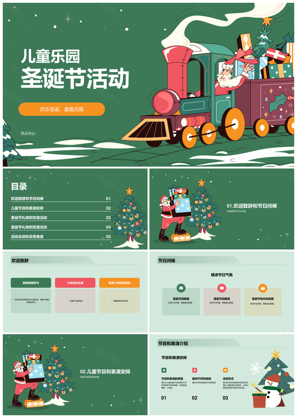 这是一张绿黄红儿童乐园圣诞小火车老人礼物插画PPT模板,包含绿黄红、儿童乐园、圣诞、小火车、老人、礼物、插画等主题内容,也可用作绿黄红儿童乐园圣诞小火车、儿童乐园圣诞小火车老人、圣诞小火车老人礼物、小火车老人礼物插画、绿黄红儿童乐园圣诞、儿童乐园圣诞小火车、圣诞小火车老人、小火车老人礼物、绿黄红儿童乐园、老人礼物插画、圣诞礼物插画、绿黄红圣诞小火车、儿童乐园圣诞、儿童乐园老人礼物、圣诞小火车等PPT场景使用。 风云办公提供的绿黄红儿童乐园圣诞小火车老人礼物插画PPT模板,下载格式为pptx,一共20页,作品中文字及图均可以修改和编辑,图片更改请在作品中右键图片并更换,文字修改请直接点击文字进行修改。