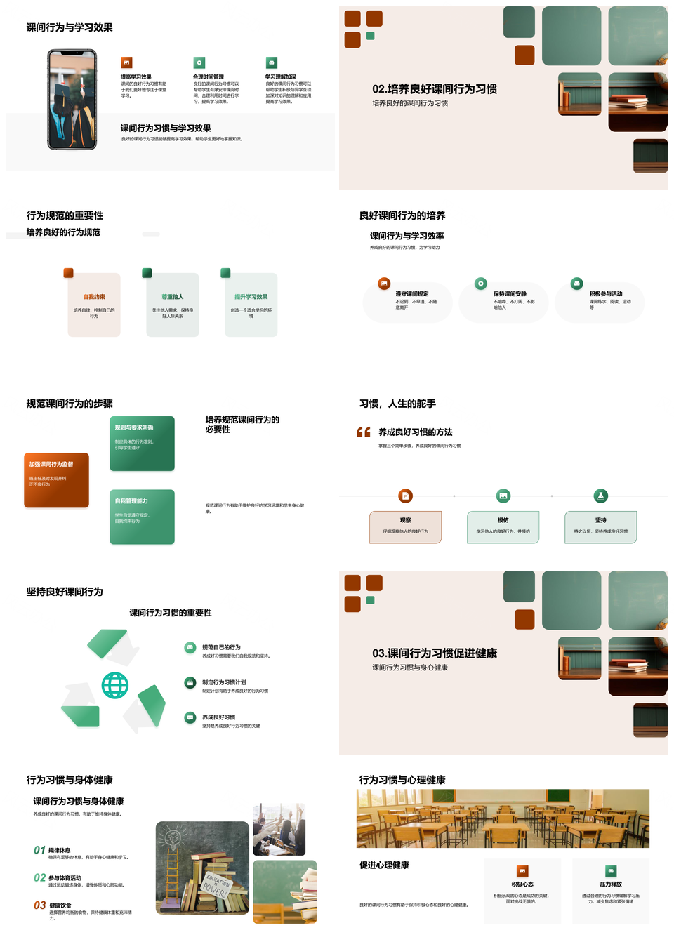 这是一张学生课间行为习惯提升学习效率PPT模板,包含学生、课间、行为习惯、提升、学习效率等主题内容,也可用作学生课间行为习惯、学生课间提升学习效率、课间行为习惯提升、行为习惯提升学习效率、学生课间行为、课间行为习惯、习惯提升学习效率、学生提升学习效率、课间提升学习效率、学生课间学习效率、课间行为习惯、学生行为习惯、提升学习效率、行为习惯提升、课间行为提升等PPT场景使用。