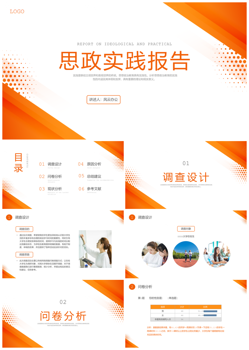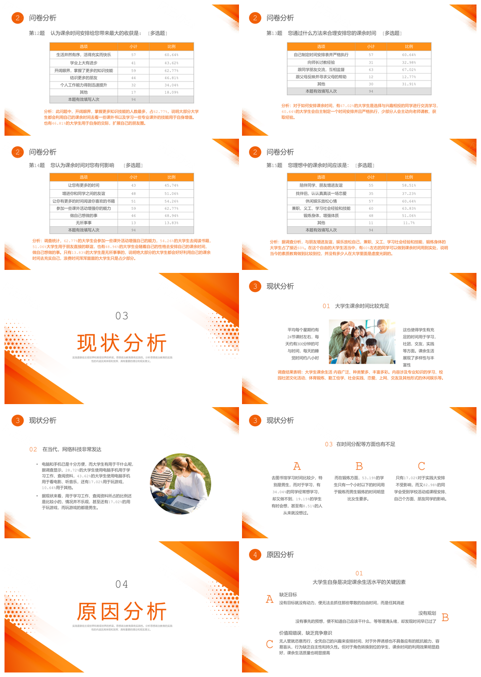 课程思政实践橙色商务简约PPT调查分析总结建议推荐