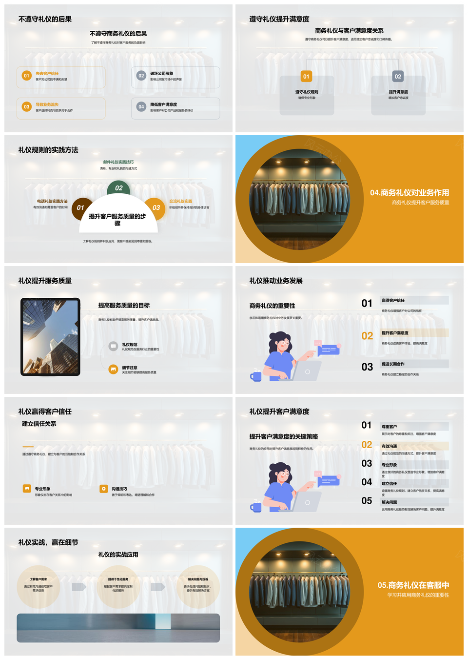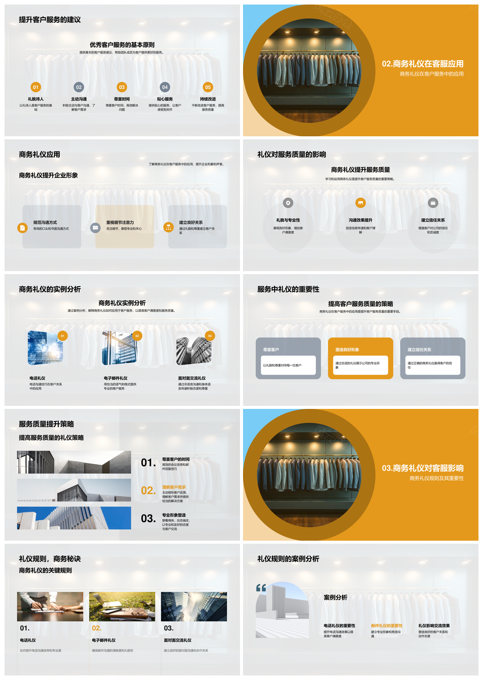 这是一张提升客户服务商务礼仪提高满意度服务质量PPT模板,包含提升、客户服务、商务礼仪、满意度、服务质量等主题内容,也可用作提升客户服务商务礼仪提高、客户服务商务礼仪提高满意度、商务礼仪提高满意度服务质量、提升客户服务商务礼仪、客户服务商务礼仪提高、商务礼仪提高满意度、提高满意度服务质量、提升客户服务提高满意度、客户服务提高满意度服务质量、提升商务礼仪提高服务质量、客户服务商务礼仪、商务礼仪提高、提高满意度、满意度服务质量、提升服务质量等PPT场景使用。 风云办公提供的提升客户服务商务礼仪提高满意度服务质量PPT模板,下载格式为pptx,一共33页,作品中文字及图均可以修改和编辑,图片更改请在作品中右键图片并更换,文字修改请直接点击文字进行修改。