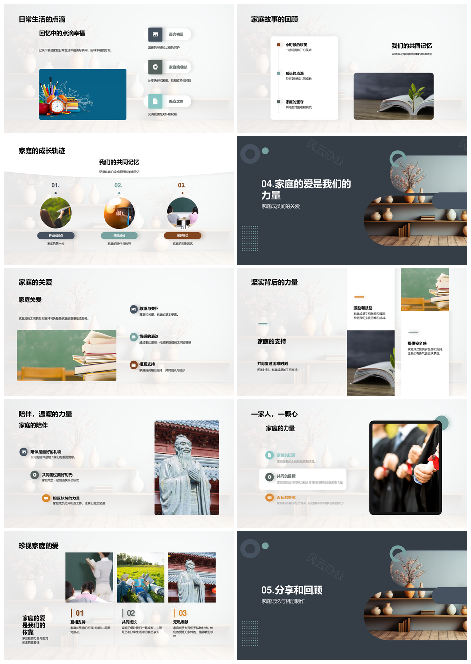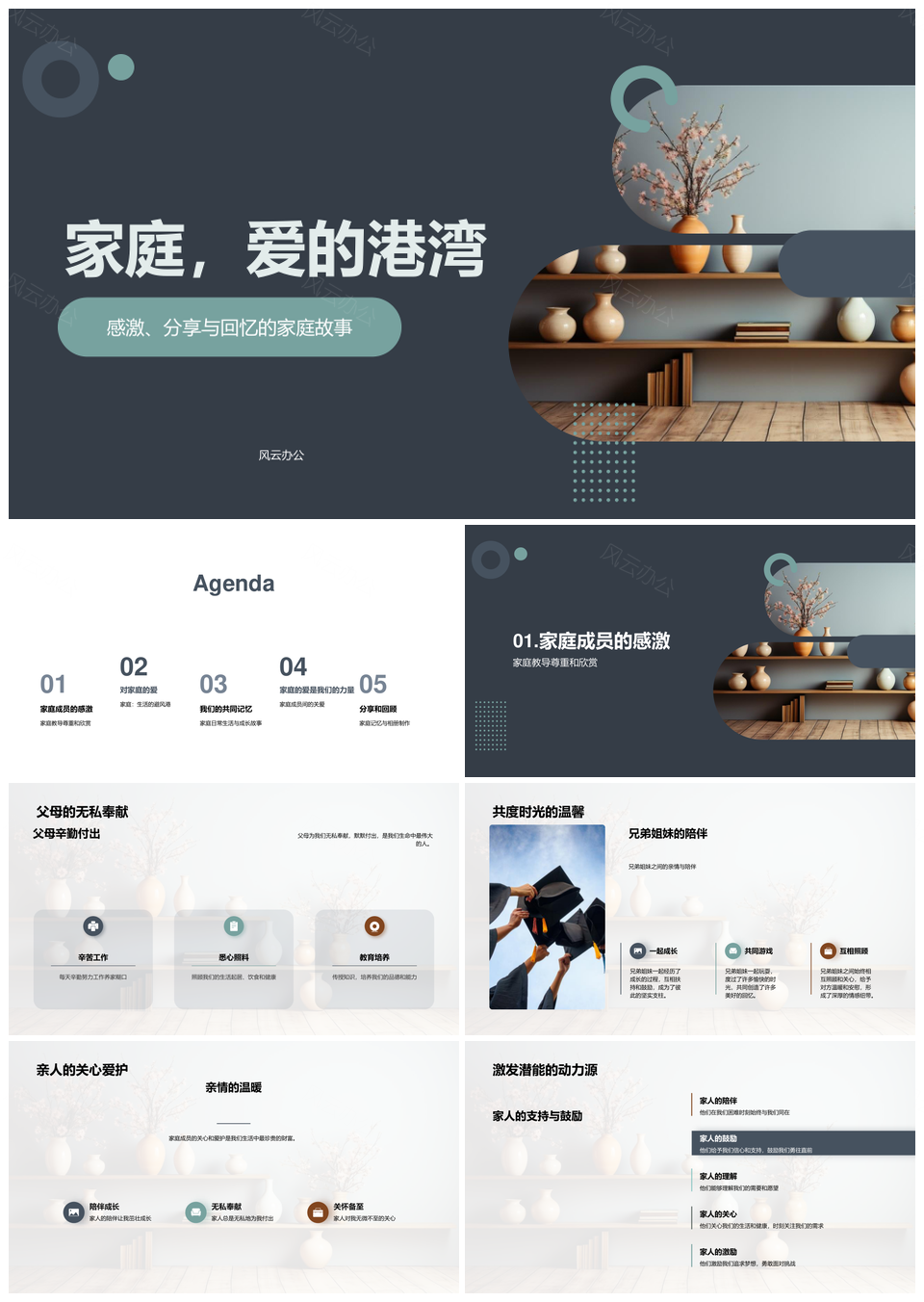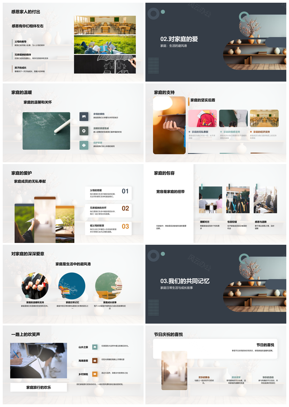 风云办公提供的家庭相册珍藏爱与教导温馨回忆PPT模板,下载格式为pptx,一共33页,作品中文字及图均可以修改和编辑,图片更改请在作品中右键图片并更换,文字修改请直接点击文字进行修改。