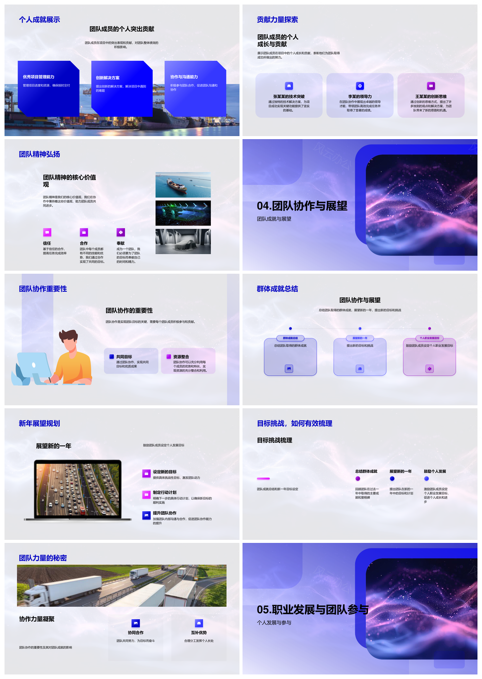 团队年终总结协作挑战创新成果贡献改进展望PPT模板